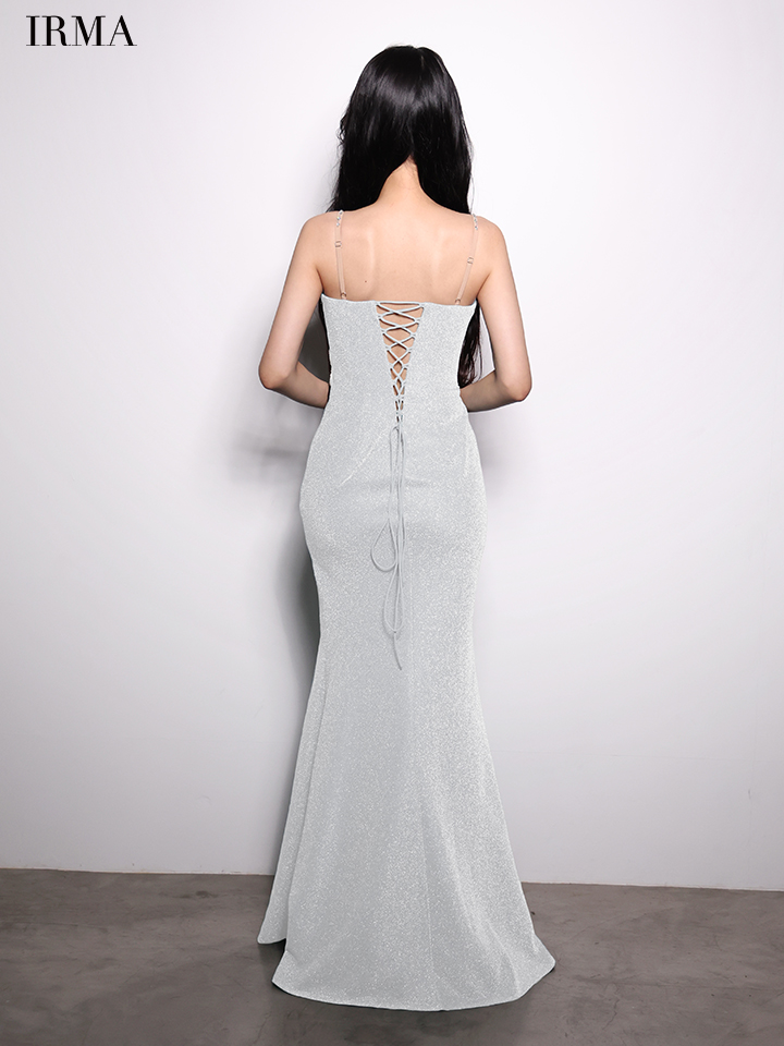 【予約商品/2月下旬発送予定】【IRMA/イルマ】オーロラビジュー/ ラメニット/ キャミ/ フロントジップ/ ビーズ刺繍/ スリット/ ロングドレス/ キャバドレス long[OF2A]
