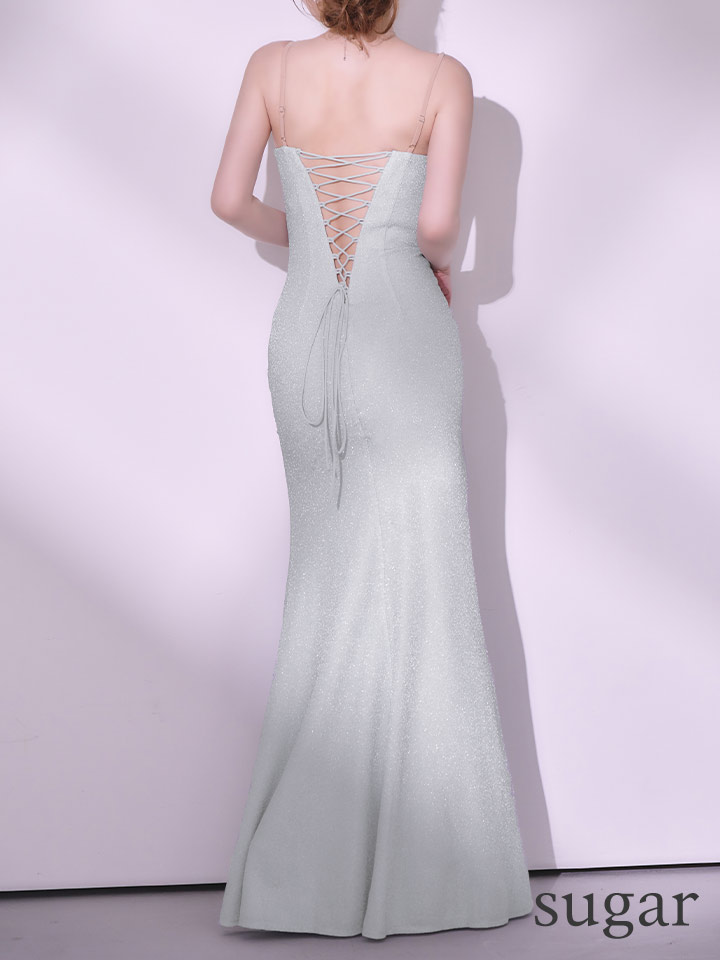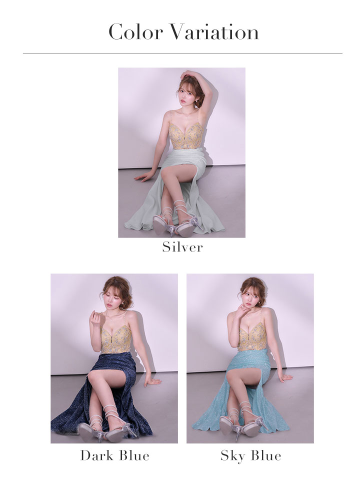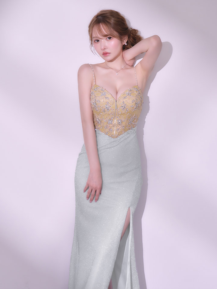 繊細なビジュー輝く刺繍が儚さを演出するスリットロングドレス♡