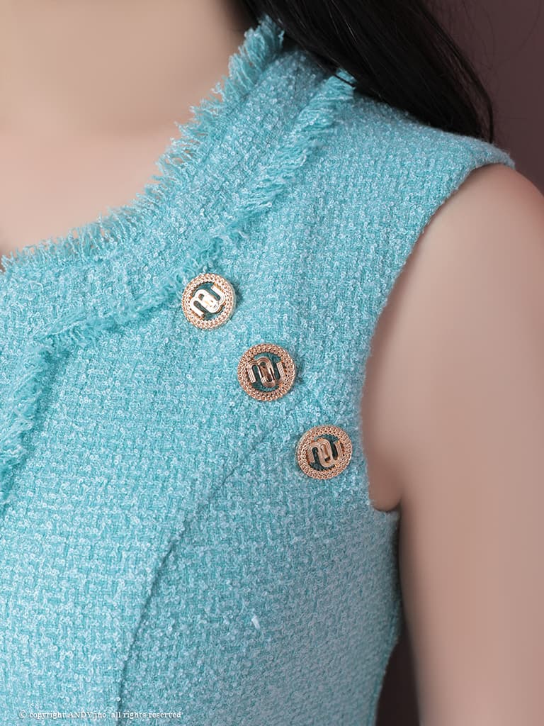 【an /アン】 ツイード/ ノースリーブ/ ハイウエスト/ フロントジップ/ ワンカラー/ タイト/ ミニドレス/ キャバドレス[OF05] [AOC3493-TQBL-2602]
