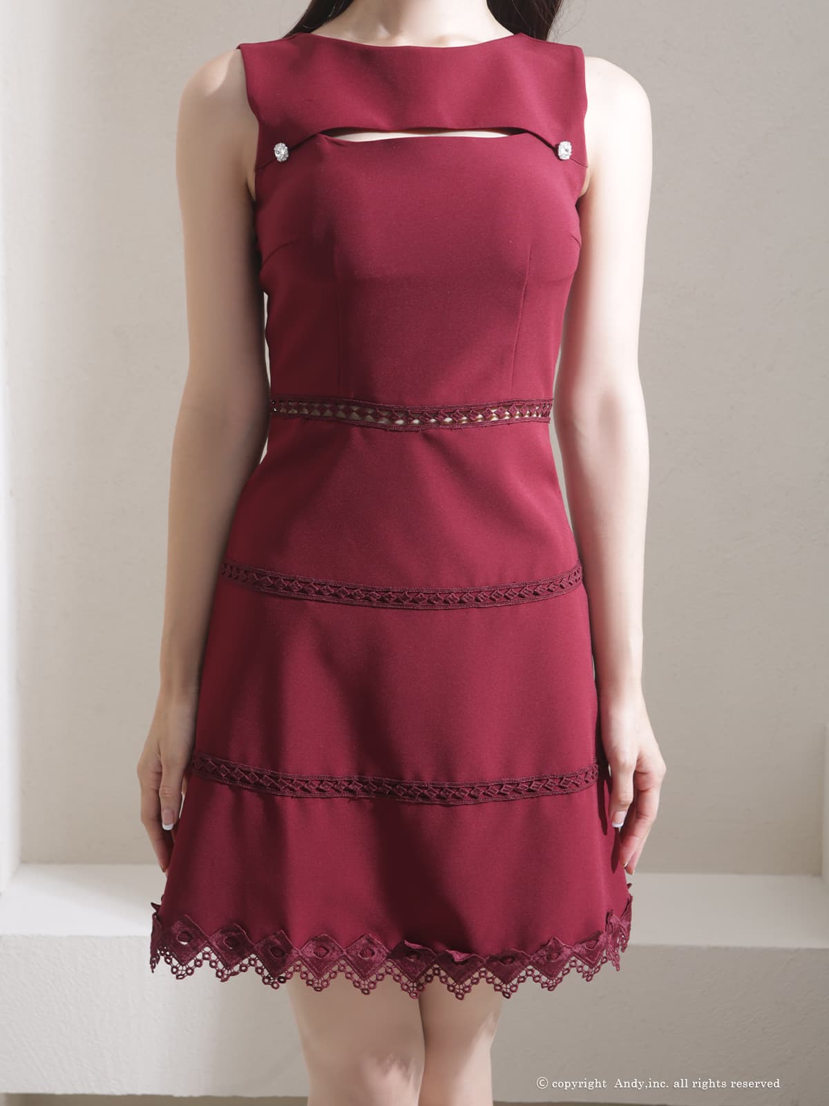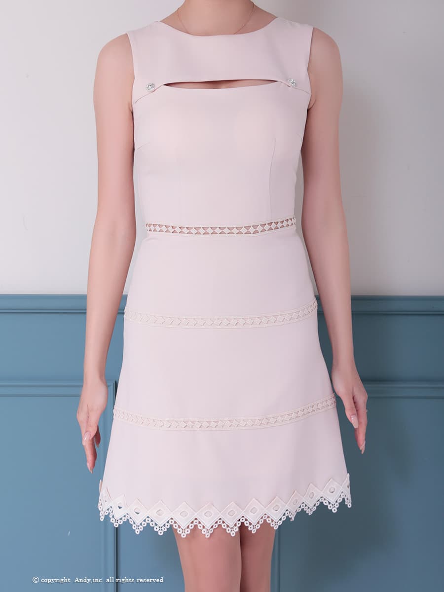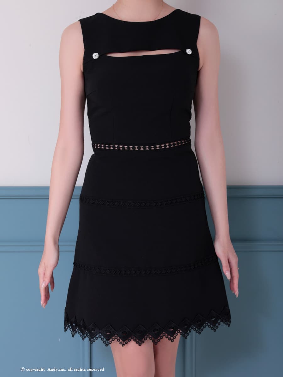 - > 【ANDY/アンディ】バストカットアウト/ ノースリーブ/ ボートネック/ レース/ シンプル/ ワンカラー/ フレア/ Aライン/ ミニドレス/ キャバドレス[OF05]