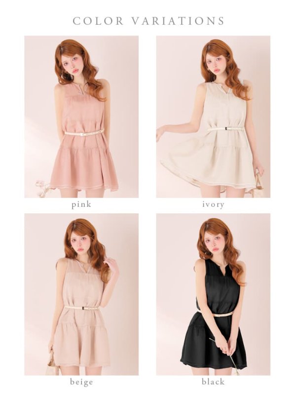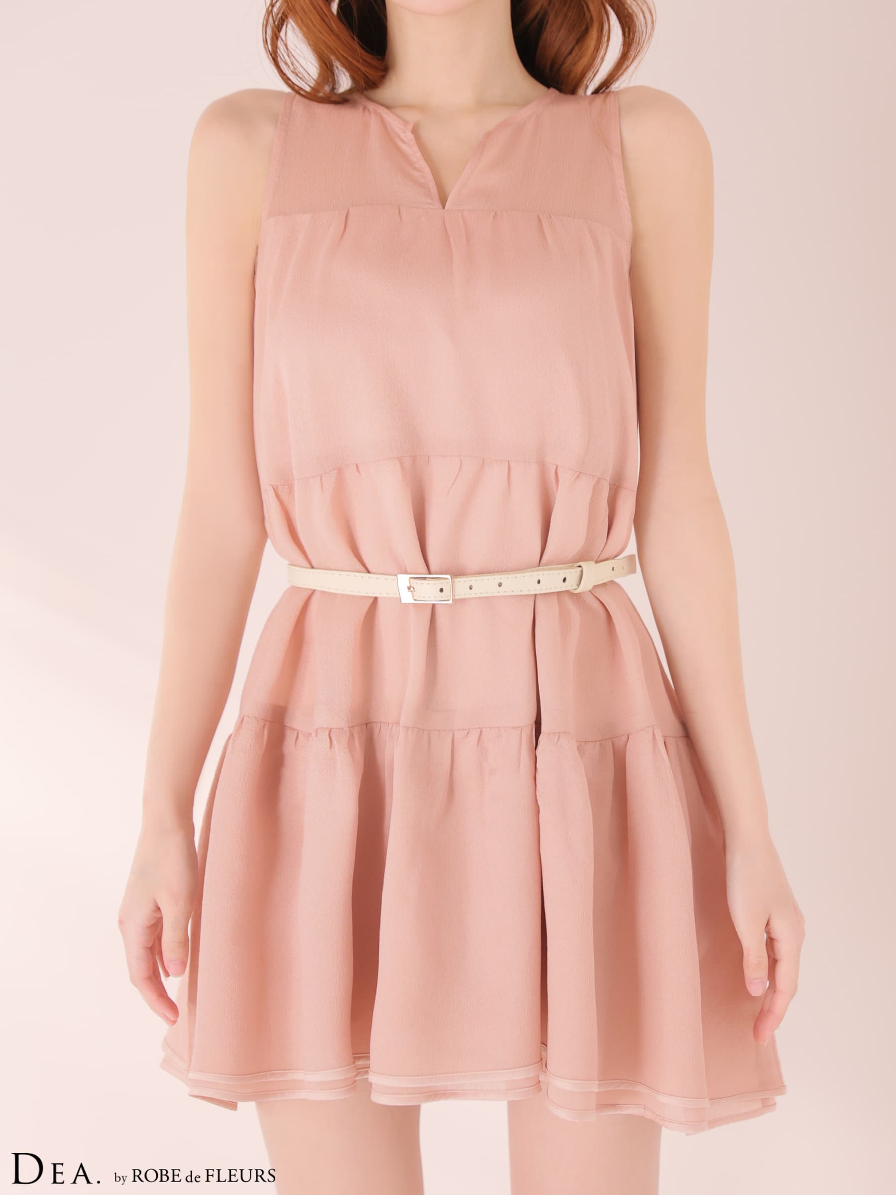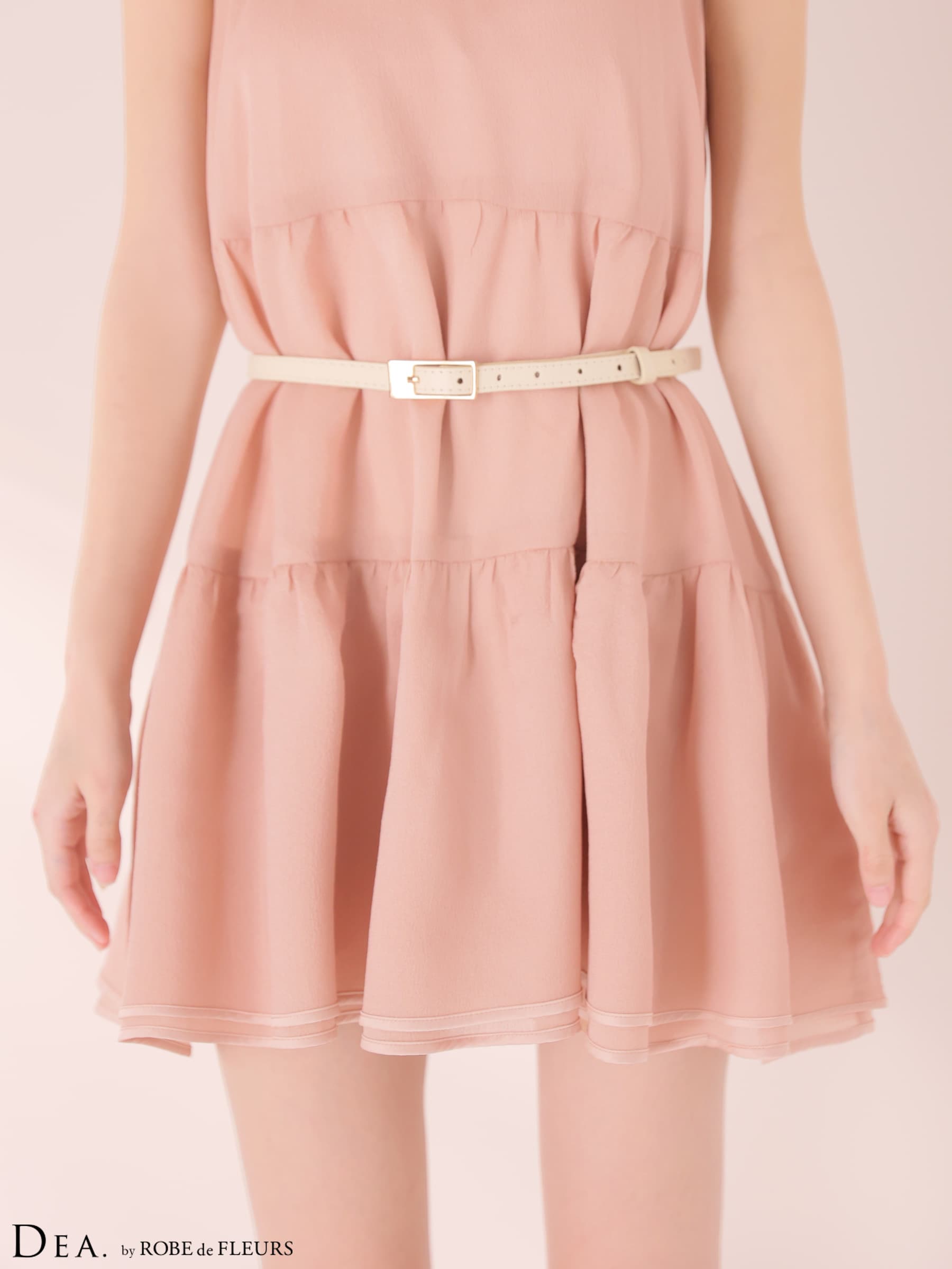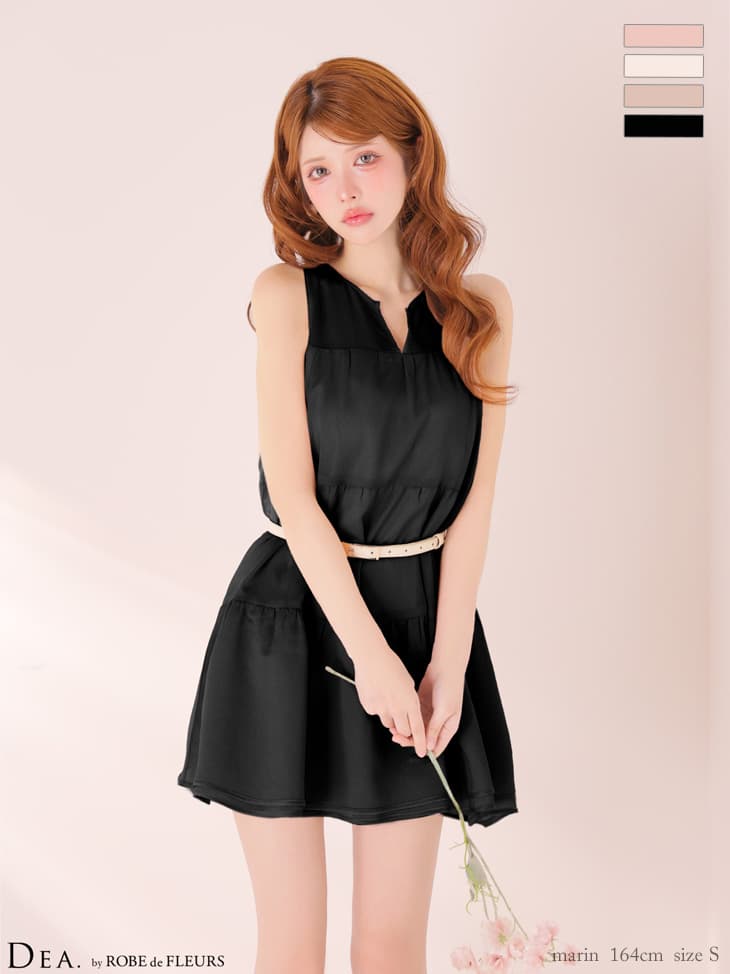 - > XS-Lサイズあり【DEA./ディア】ギャザー/ ティアード/ シフォン/ ベルト付き/ フレア/ ミニドレス/ キャバドレス[OF08]