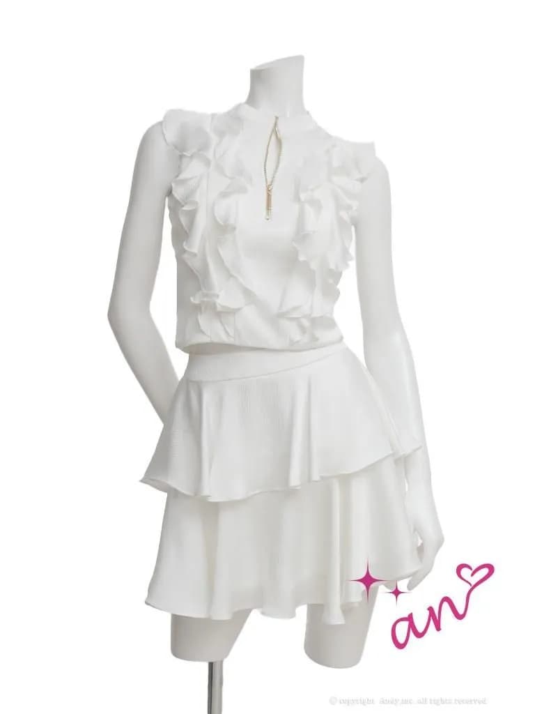 XSサイズあり【an /アン】 セットアップ/ ノースリーブ/ バストジップ/ ティアード/ ペタルフリル/ フレア/ ミニドレス/ キャバドレス[OF05] [AOC4088-W-2602]