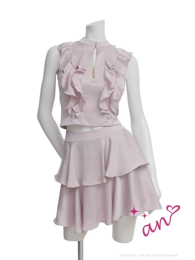 XSサイズあり【an /アン】 セットアップ/ ノースリーブ/ バストジップ/ ティアード/ ペタルフリル/ フレア/ ミニドレス/ キャバドレス[OF05]
