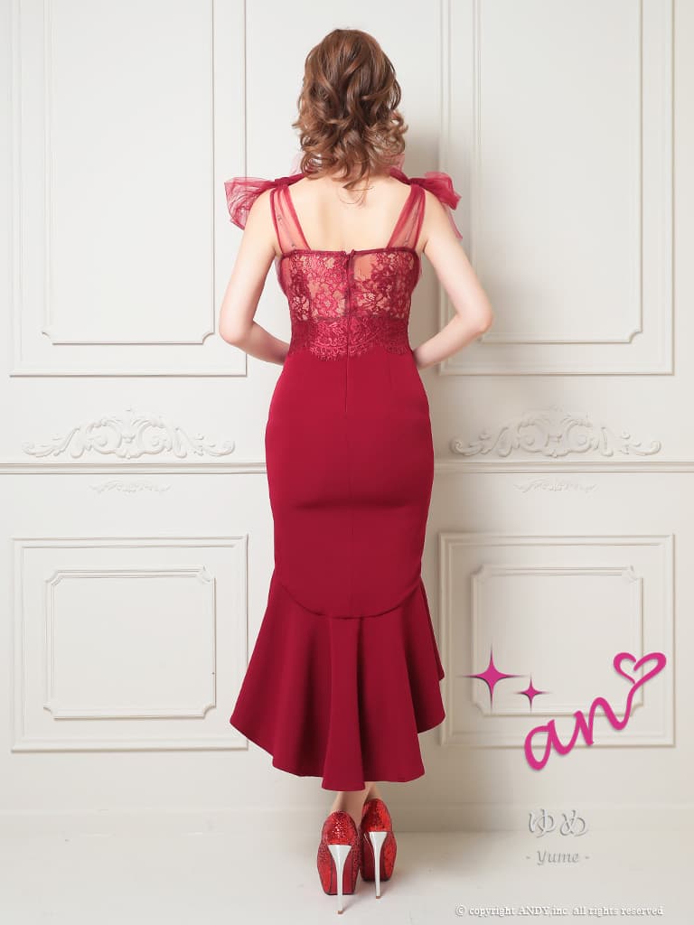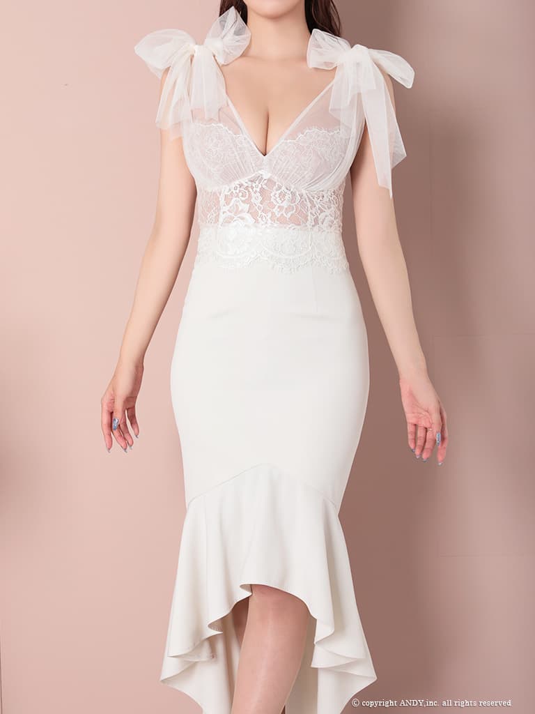 - > 【an /アン】ショルダーリボン/ チュール/ シアーレース/ Vネック/ マーメイド/ テールカット/ ワンピース/ ミディアムドレス/ キャバドレス[OF05]