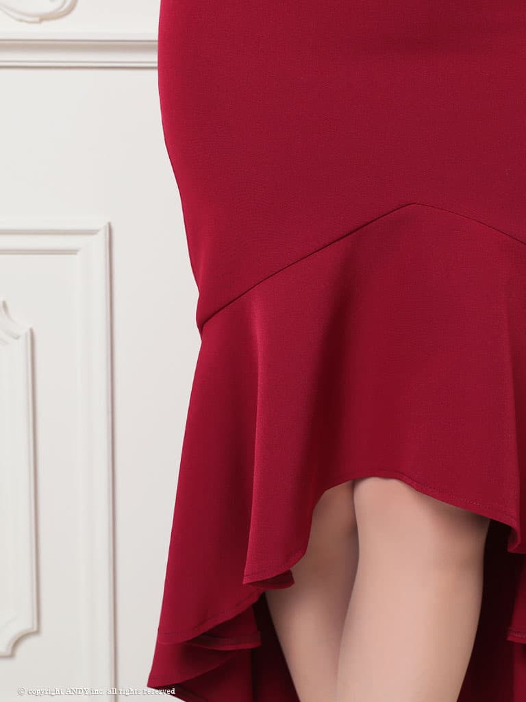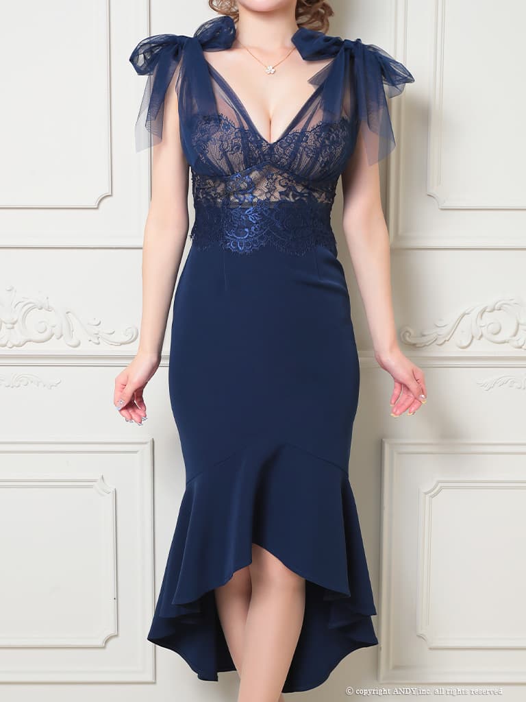 【an /アン】ショルダーリボン/ チュール/ シアーレース/ Vネック/ マーメイド/ テールカット/ ワンピース/ ミディアムドレス/ キャバドレス[OF05] [AOC4092-BGD-2602]