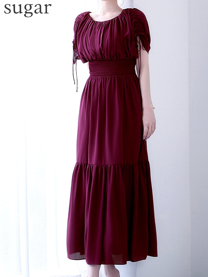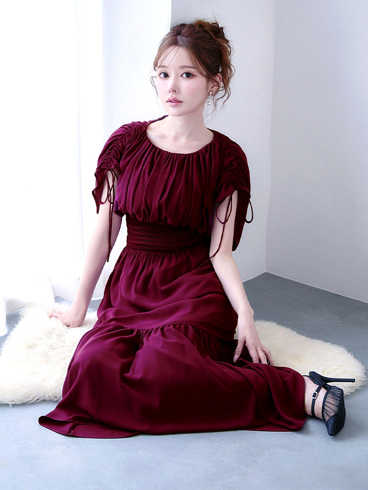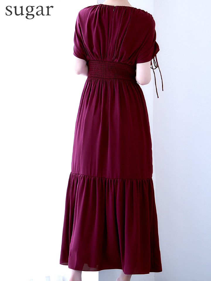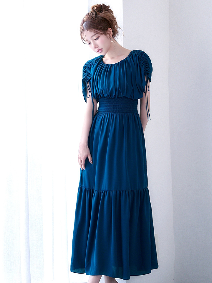 - > XLサイズあり【AMORA GRACE / アモーラグレース】 オケージョンドレス/ パーティードレス/ お呼ばれドレス/ 無地/ ハーフスリーブ/ ドロスト/ ギャザー/ フレア/ ミモレ丈/ ワンピース/ ミディアムドレス/ キャバドレス[OF05]