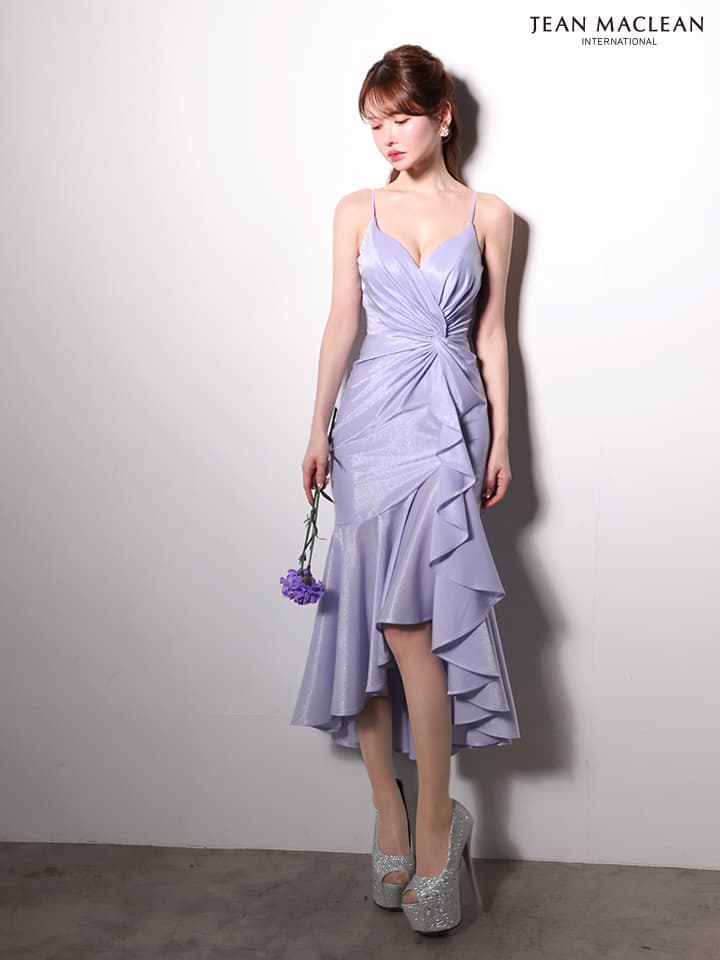 【予約商品/2月下旬発送予定】XSサイズあり【JEAN MACLEAN/ジャンマクレーン】 マーメイド/ シャイニーサテン/ タック/ キャミソール/ ひざ丈/ ストレッチ/ フリル/ テールカット/ ミディアムドレス/ キャバドレス[OF2A] [61054-JM-LV-2602]