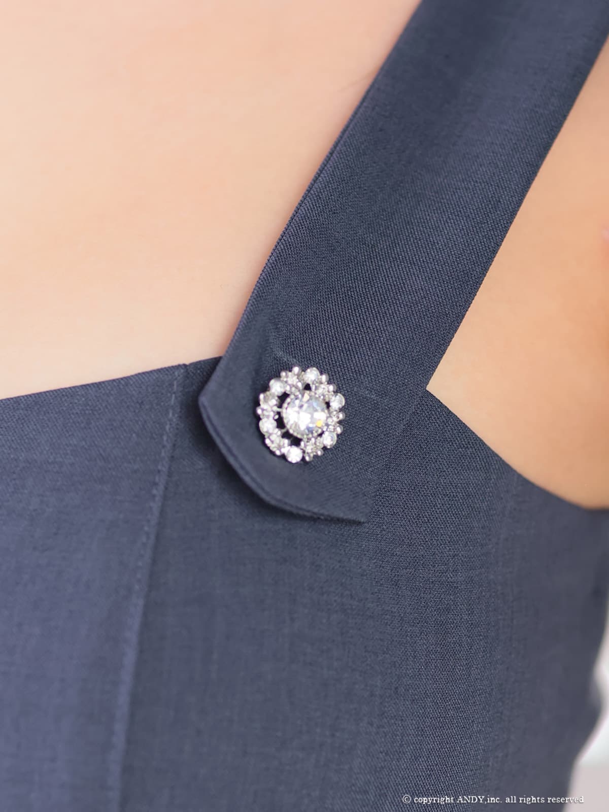 XSサイズあり【an/アン】スクエアネック/ バストジップ/ ウエストマーク/ ビジューボタン/ プリーツ/ フレア/ ミニドレス/ キャバドレス[OF05] [AOC4094-Indigo-2602]