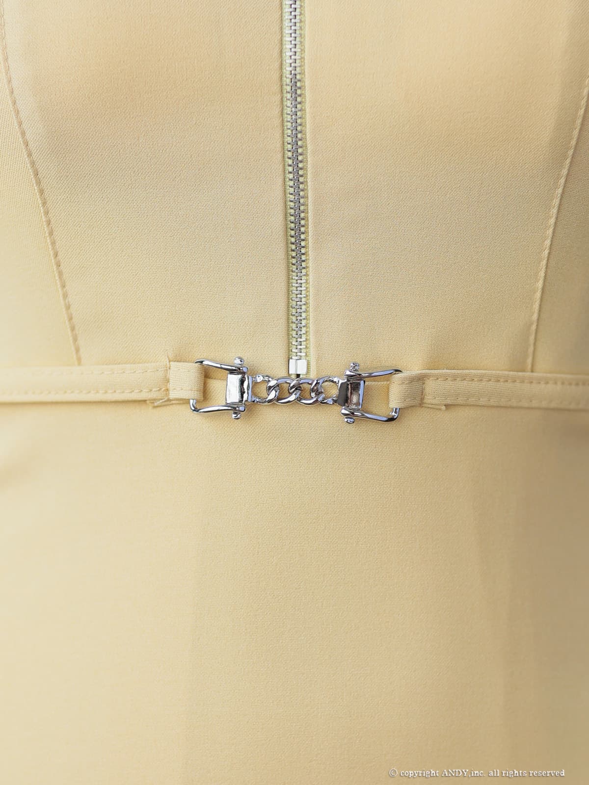 バストジップを開ければセクシーな着こなしも楽しめる、甘さ控えめな一着です。