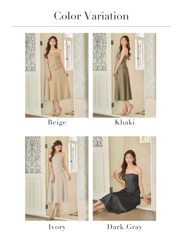 - > XSサイズあり【Veautt/ヴュート】【OF05】ベアトップ/ スカーフ/ ウエストタック/ ボタン/ シフォン/ 2way/ フレア/ ワンピース/ ミディアムドレス/ キャバドレス