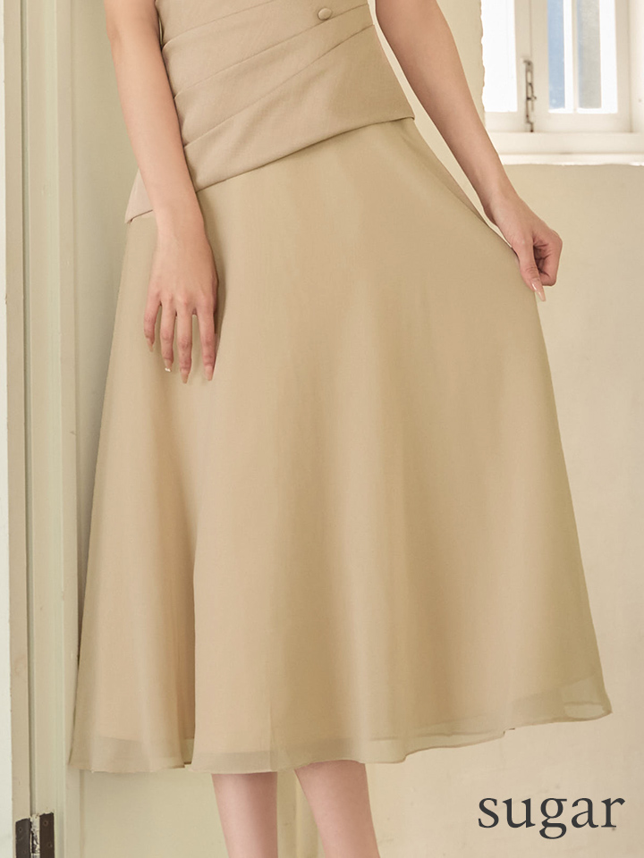 程よくハリのある身頃と、軽やかに広がるフレアスカートのコントラストが上品な印象を演出します。