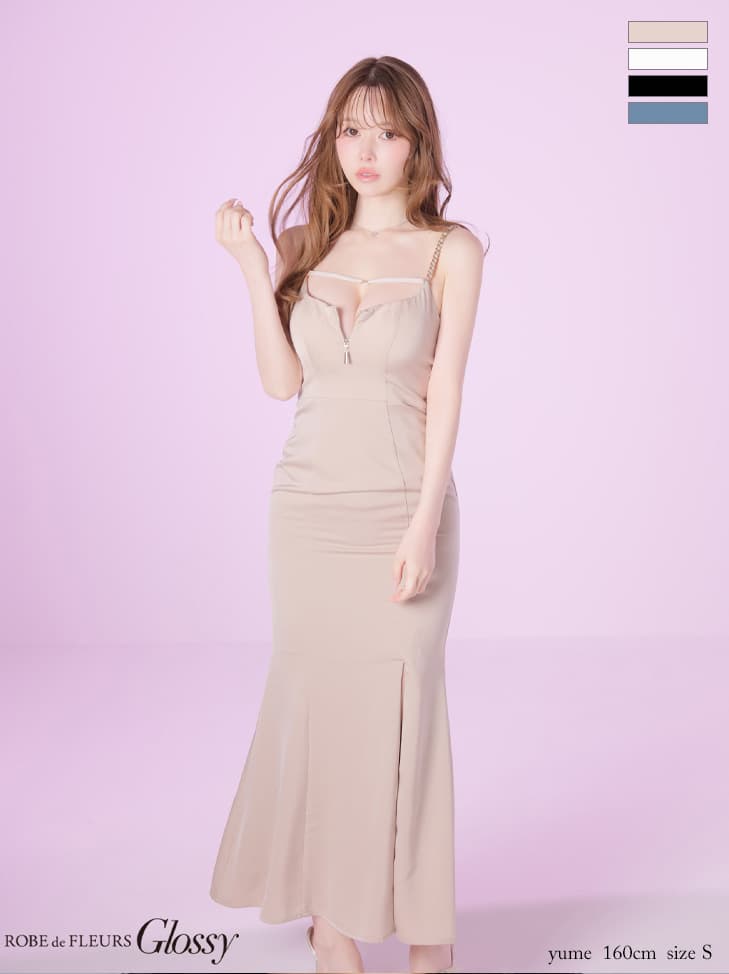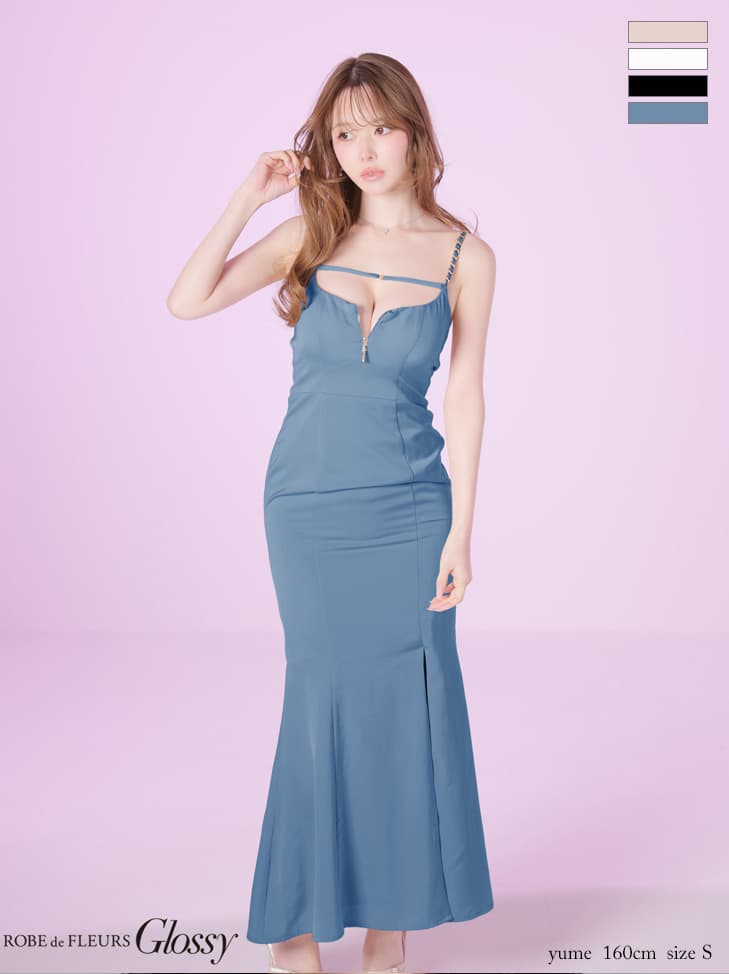 Lサイズあり【Glossy/グロッシー】チェーン/ ショルダー/ サテン/ スリット/ マーメイド/ ロングドレス/ キャバドレス[OF08] [GL4177-B-S260227]