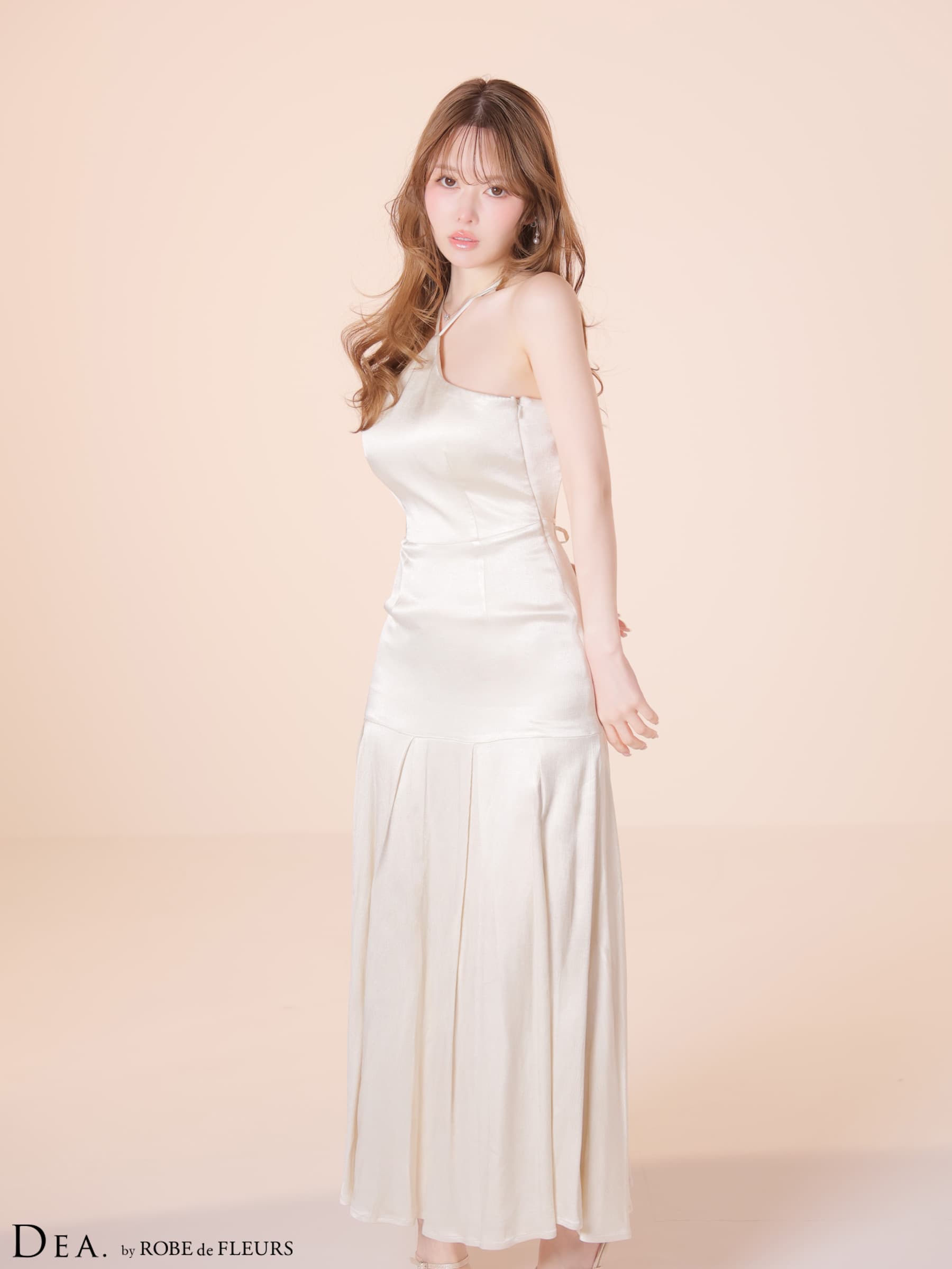 動くたびに光を取り込む艶やかな質感のロングワンピ。
