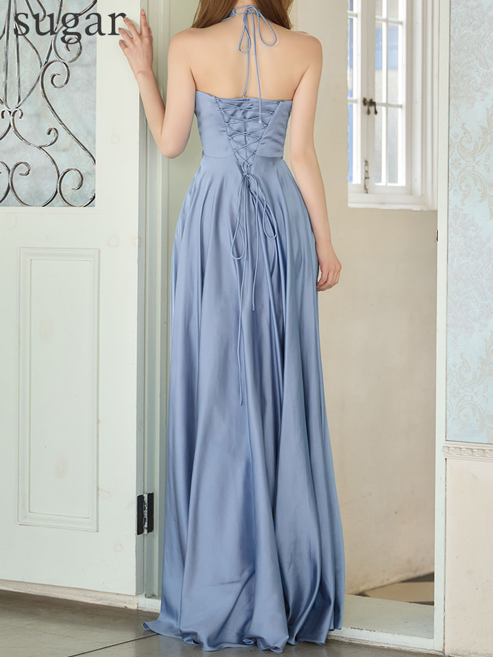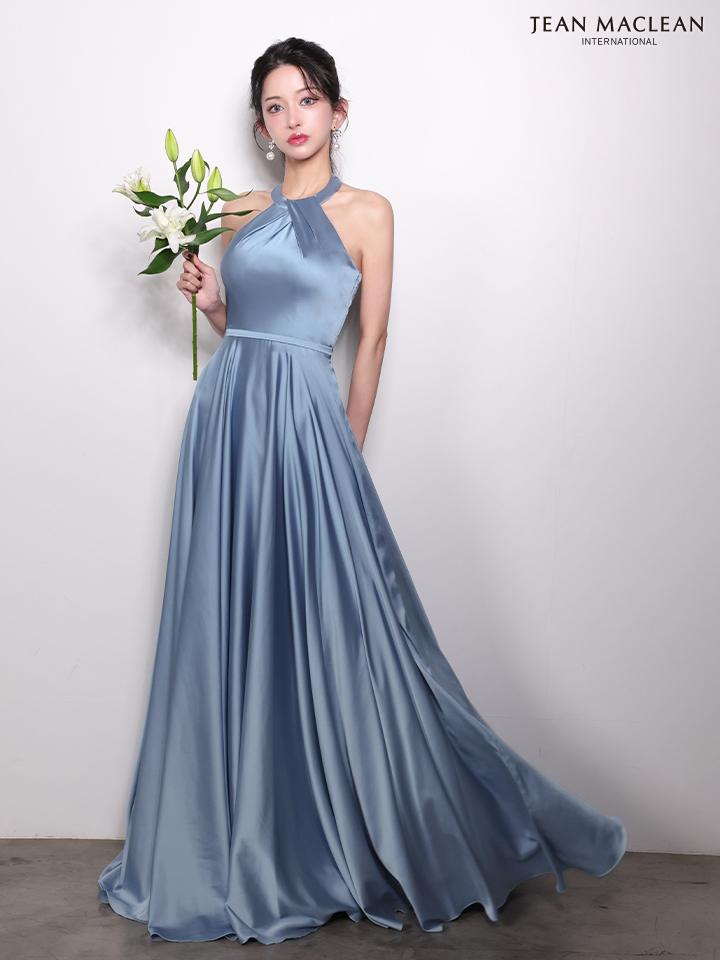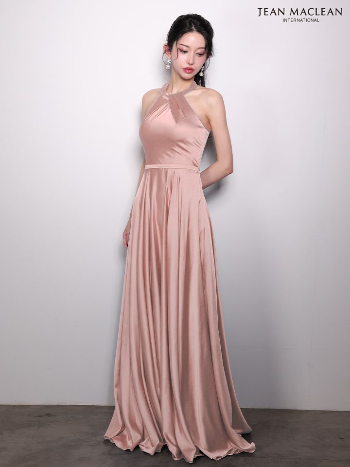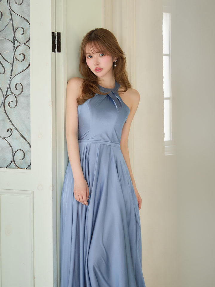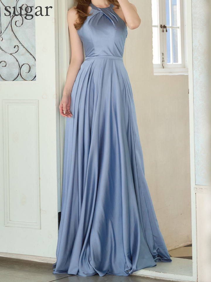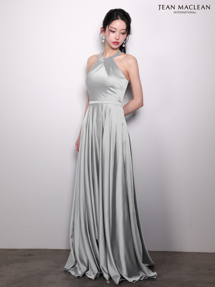 ストレッチサテンの奏でる光沢がゴージャスなロングドレス
