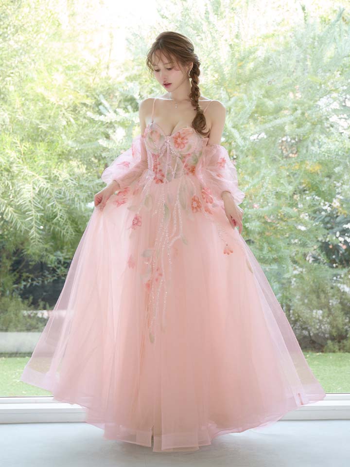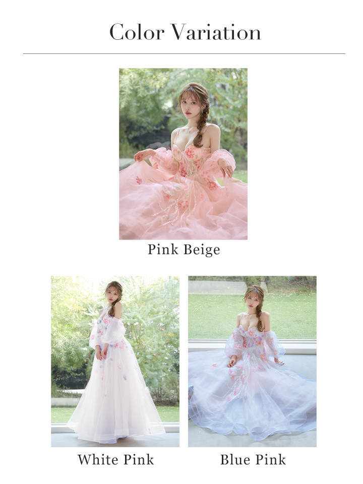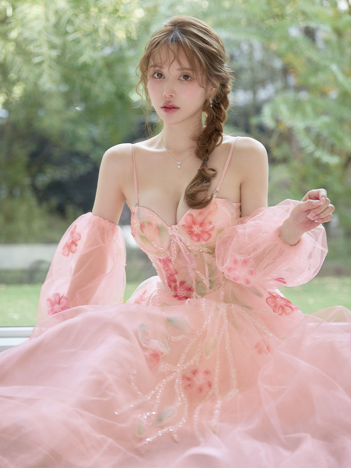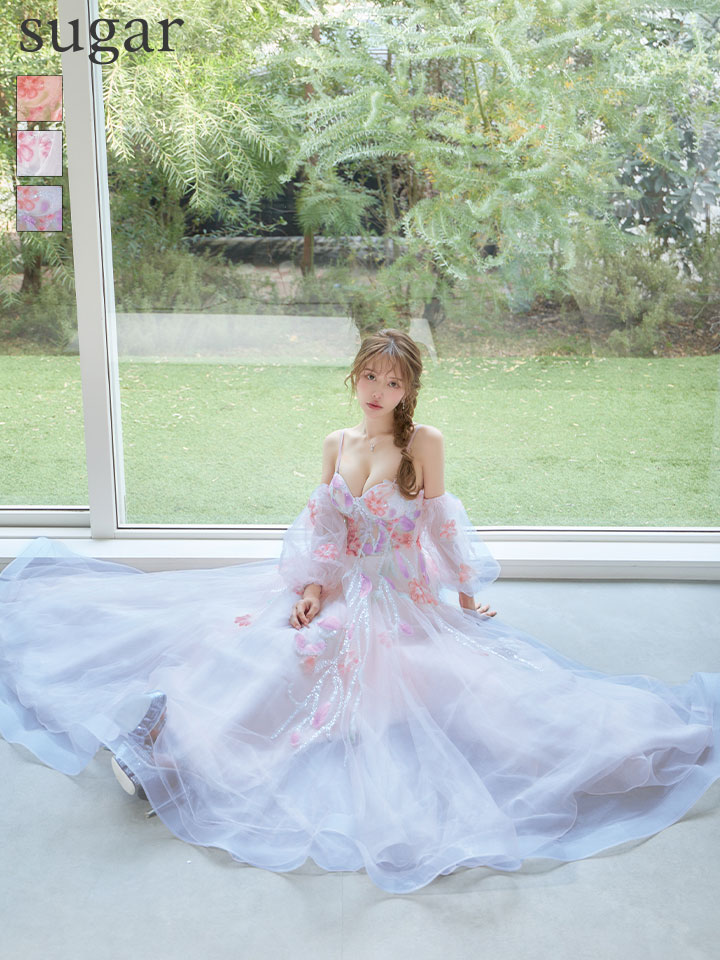 花柄×ビジューで立体的に彩ったプリンセスロングドレス♡