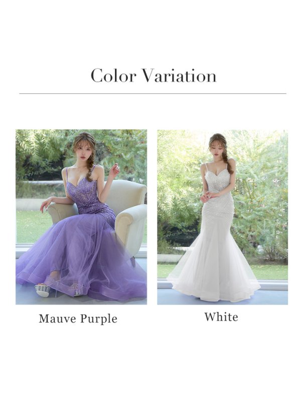 【JEAN MACLEAN/ジャンマクレーン】シアー/ チュール/ ビジュー/ フリル/ ネット/ キャミ/ ノースリーブ/ マーメイド/ プリンセス/ ロングドレス/ キャバドレス long[OF2A] [61064-JM-MauvePL-S260228]