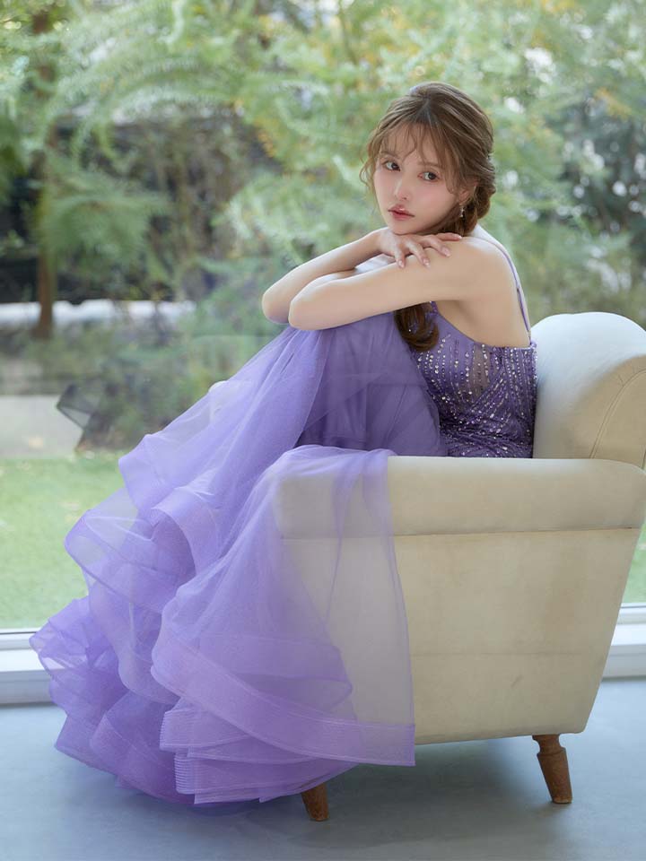 煌めく装飾が贅沢にあしらわれたプリンセスロングドレス♡