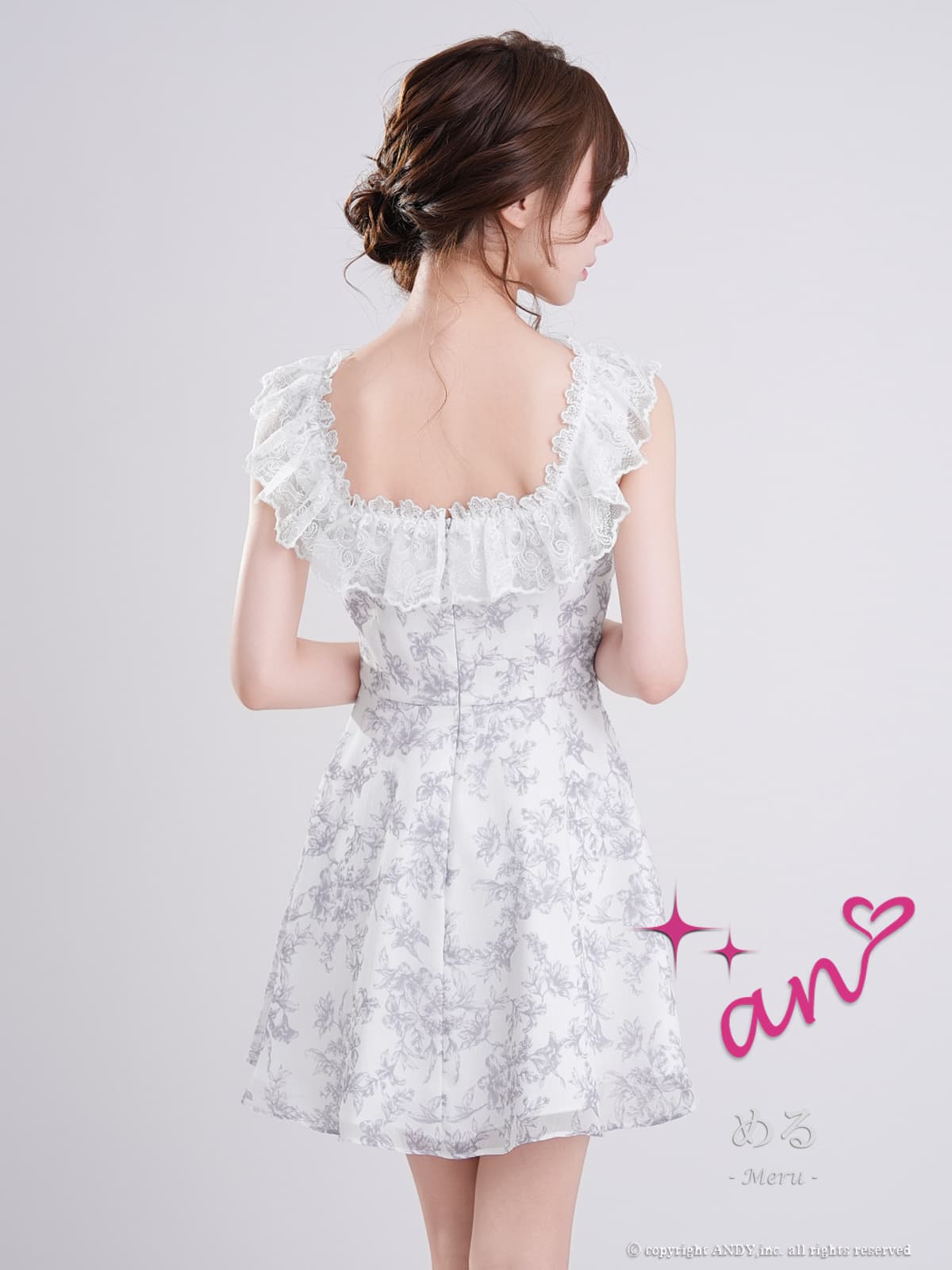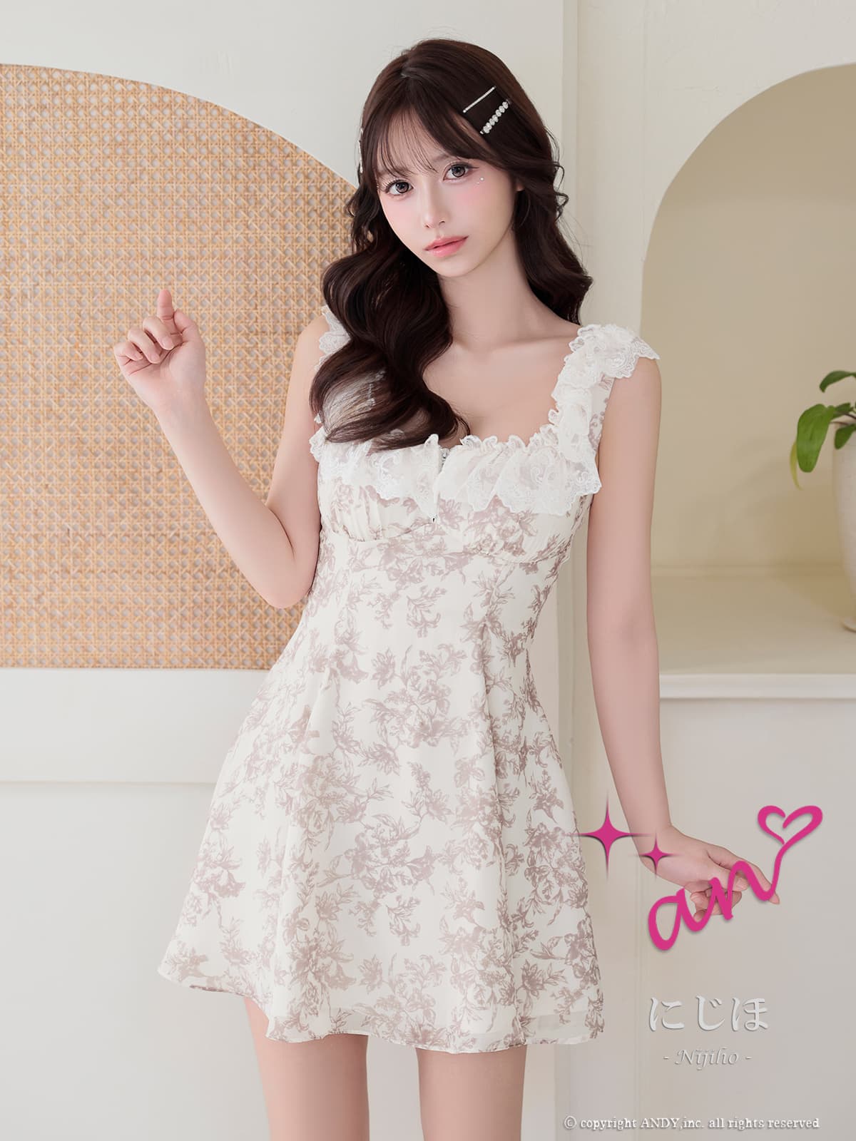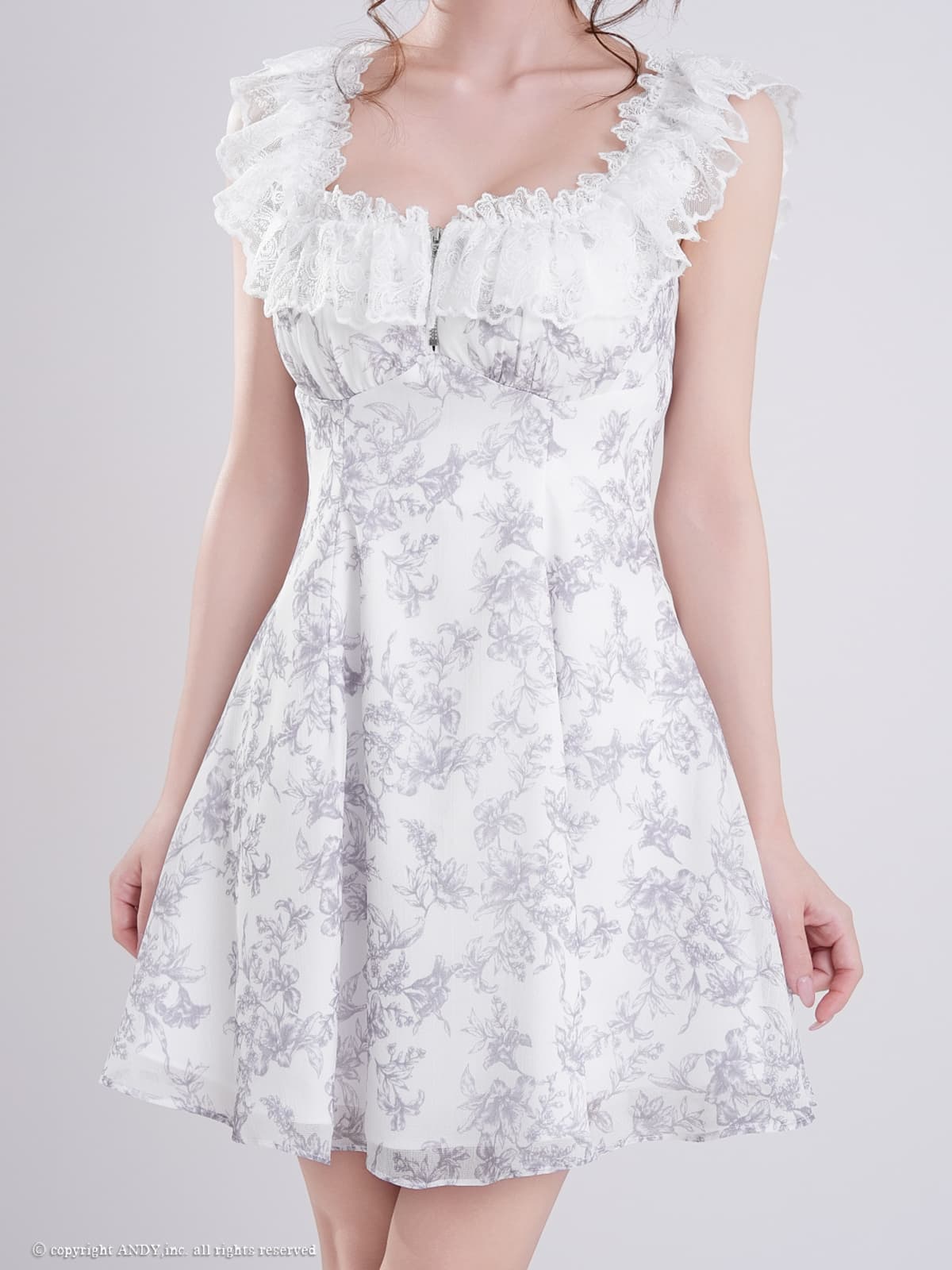 XSサイズあり【an/アン】スクエアネック/ フリルレース/ バストジップ/ フラワープリント/ ノースリーブ/ ハイウエスト/ 総柄/ フレア/ ミニドレス/ キャバドレス[OF05] [AOC4084-WxGY-2603]