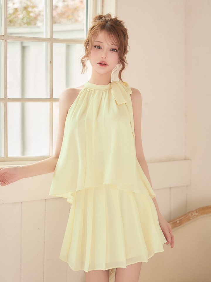 XSサイズあり【DEA./ディア】サテン/ シフォン/ フレア/ セットアップ/ ミニドレス/ キャバドレス[OF08]【一部予約商品/3月上旬発送予定】 [DE3372-Y-S260302]