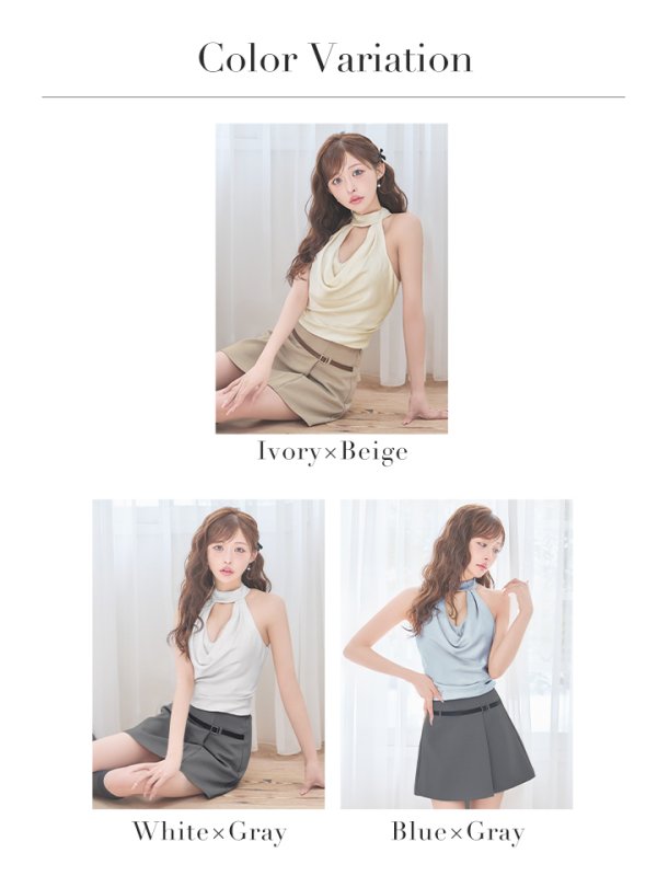 - > 【予約商品/3月下旬-4月上旬発送予定】XSサイズあり【ANGEL R/エンジェルアール】ホルターネック/ バストオープン/ ドレープ/ ウエストベルト/ バイカラー/ セパレート/ シフォン/ セットアップ/ フレア/ マイクロミニドレス/ キャバドレス[OF2]