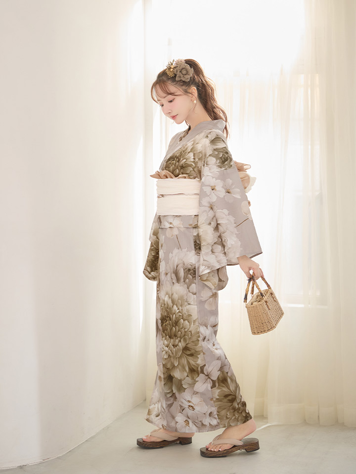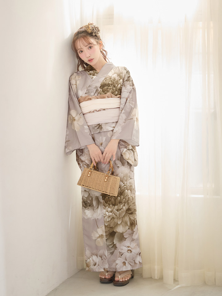 送料無料!ニュアンスブラウン浴衣【浴衣3点セット 浴衣/帯/下駄】[OF04]【予約 / 4月上旬発送予定】y [Y-9354-nz-dzm-BR-F-26MY-260304]