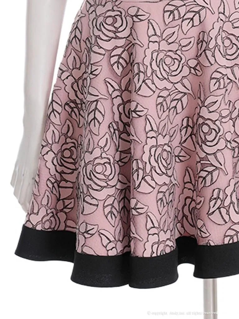 フレアのスカートは刺繍入りのレースが上品フェミニンな印象。