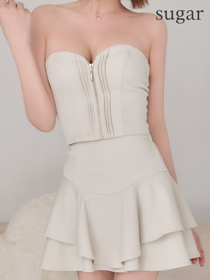 - > 【予約商品/3月下旬-4月上旬発送予定】XSサイズあり【ANGEL R/エンジェルアール】ベアトップ/ バストハートカット/ フロントファスナー/ フリル/ 2way/ セパレート/ フレア/ マイクロミニドレス/ キャバドレス[OF2]