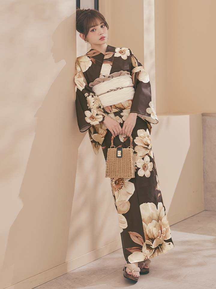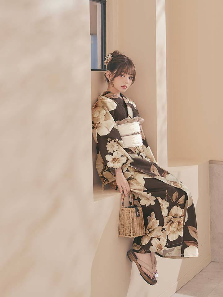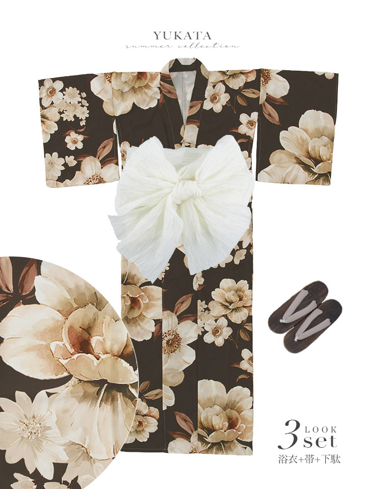 【即日発送】ブラウンエレガントフラワー浴衣【浴衣3点セット 浴衣/帯/下駄】[OF04] [Y-9372-sb-dzjm-BR-F-26PO-260305]