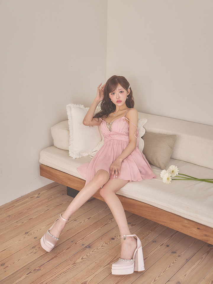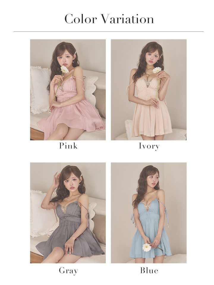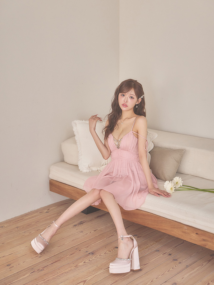- > 【予約商品/4月上旬-4月中旬発送予定】XSサイズあり【ANGEL R/エンジェルアール】Vカット/ バストビジュー/ シフォン/ ショルダー/ リボン/ フレア/ マイクロミニドレス/ キャバドレス[OF2]