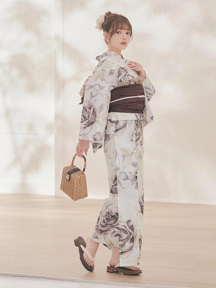 【即日発送】エクリュアンティークローズ浴衣【浴衣3点セット 浴衣/帯/下駄】[OF04] [Y-9303-kj-BR-F-26PO-260305]