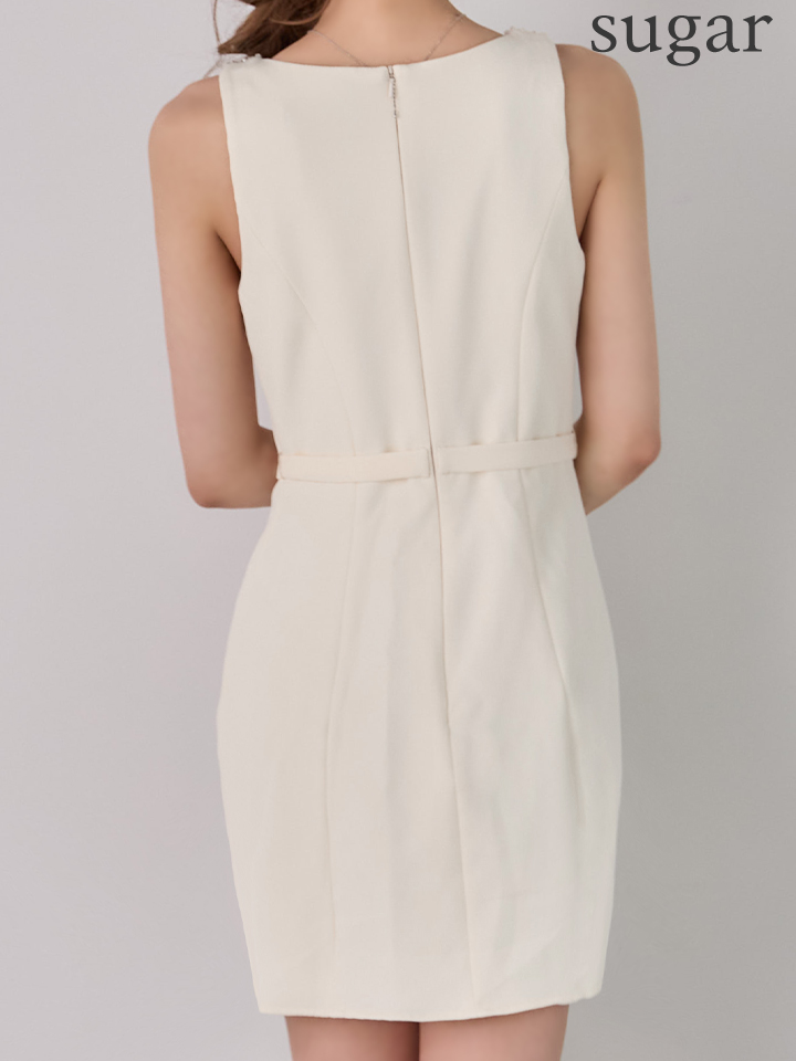 XSサイズあり【IRMA/イルマ】ビジュー/ ノースリーブ/ ベルト/ ストレッチ/ タイト/ ミニドレス/ キャバドレス[OF2A] [61048-IR-vanilla-S260306]