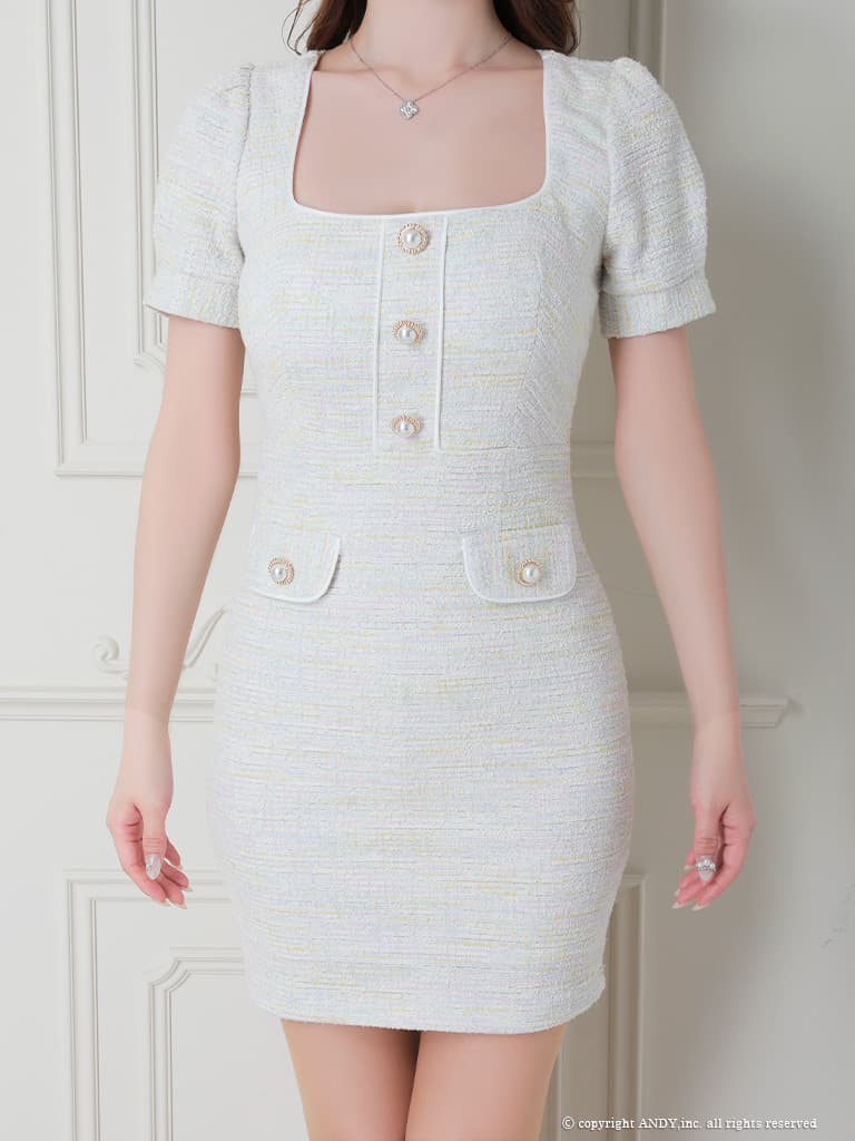 - > 【an /アン】ラメ/ ツイード/ パイピング/ スクエアネック/ ビジューボタン/ ストレッチ/ ハーフスリーブ/ 袖あり/ タイト/ ミニドレス/ キャバドレス[OF05]