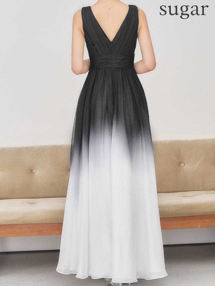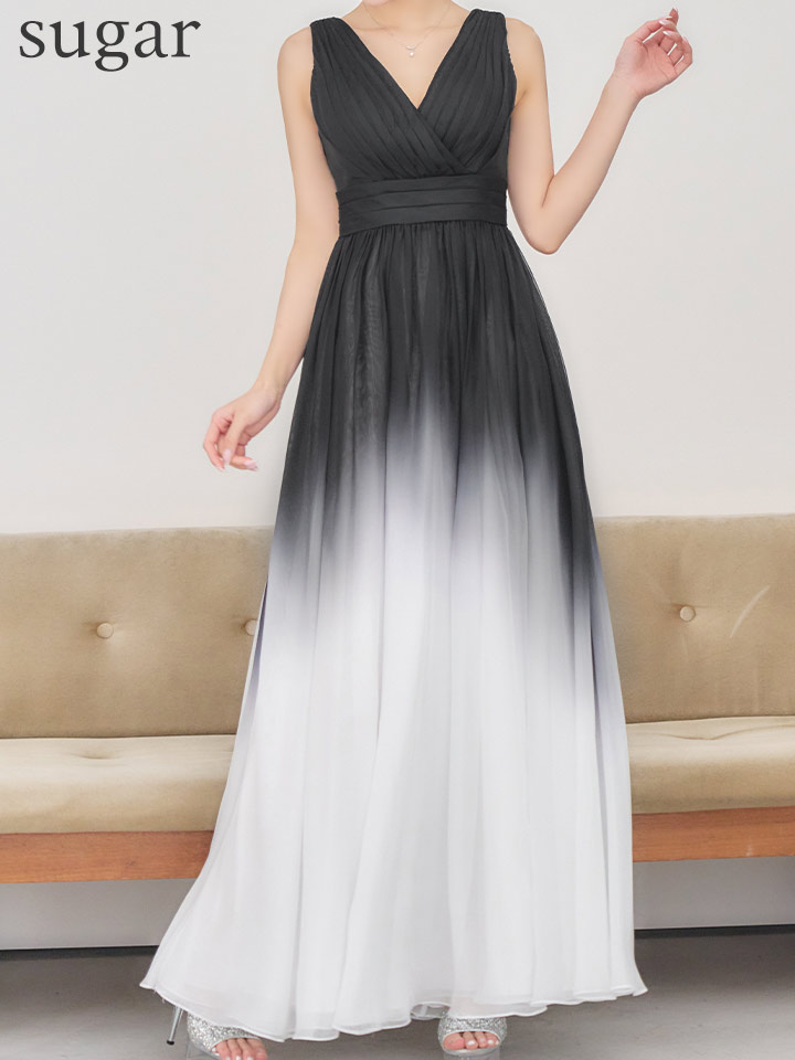 XS-Lサイズあり【SETTAN/セッタン】グラデーション/ バイカラー/ バストタック/ Vネック/ ウエストマーク/ ハイウエスト/ フレア/ ワンピース/ ロングドレス/ キャバドレス long[OF2]