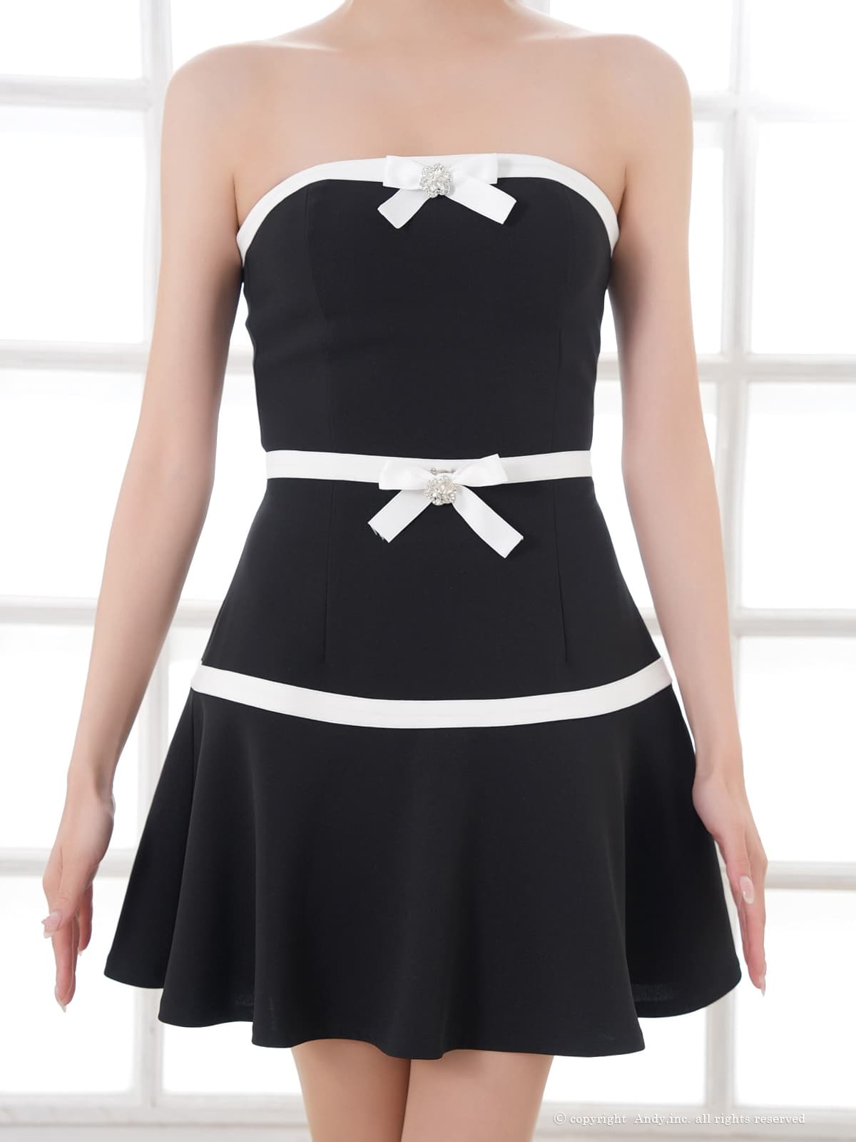 【ANDY/アンディ】デコルテを大胆に魅せたベアデザインがセクシーなミニドレス。