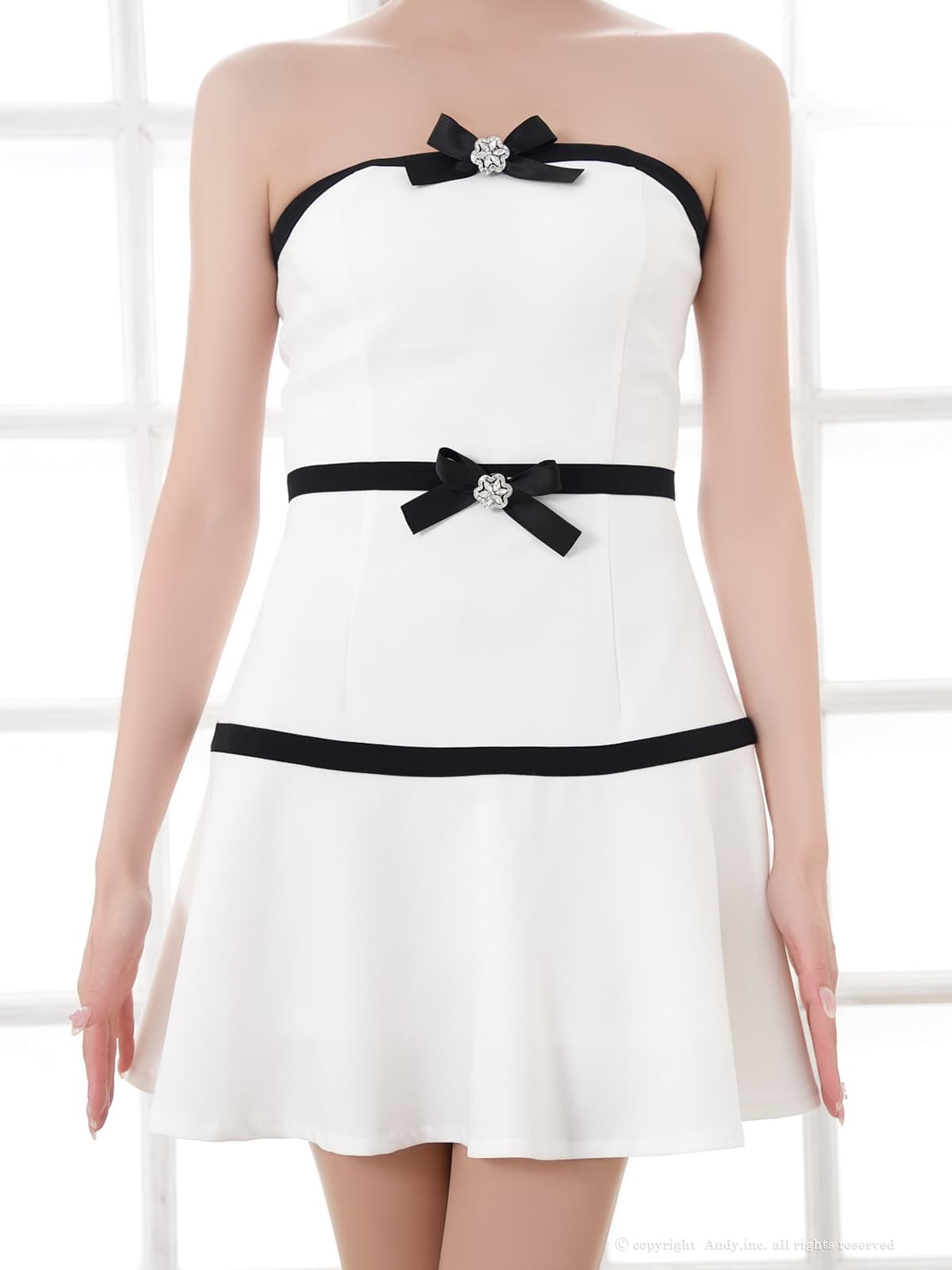 【予約商品/3月下旬発送予定】XSサイズあり【an /アン】 2WAY/ バイカラー/ リボン/ ベア/ ブローチ/ フレア/ Aライン/ ミニドレス/ キャバドレス[OF05] [ON3072-W-2603]