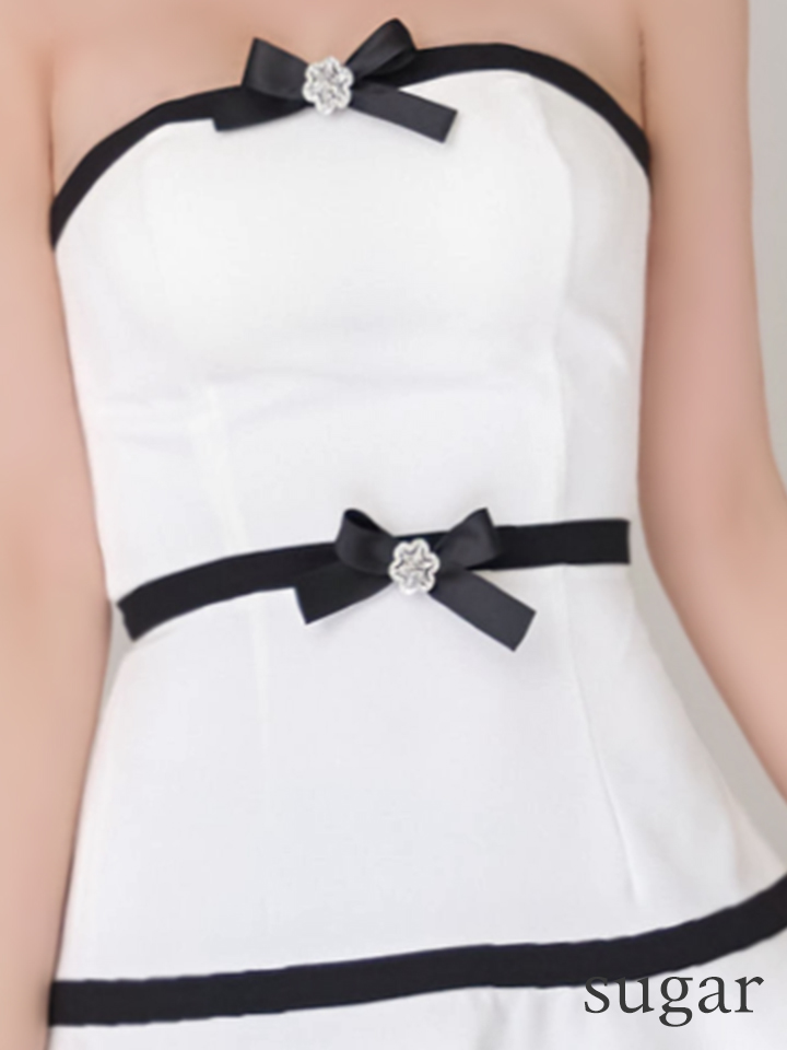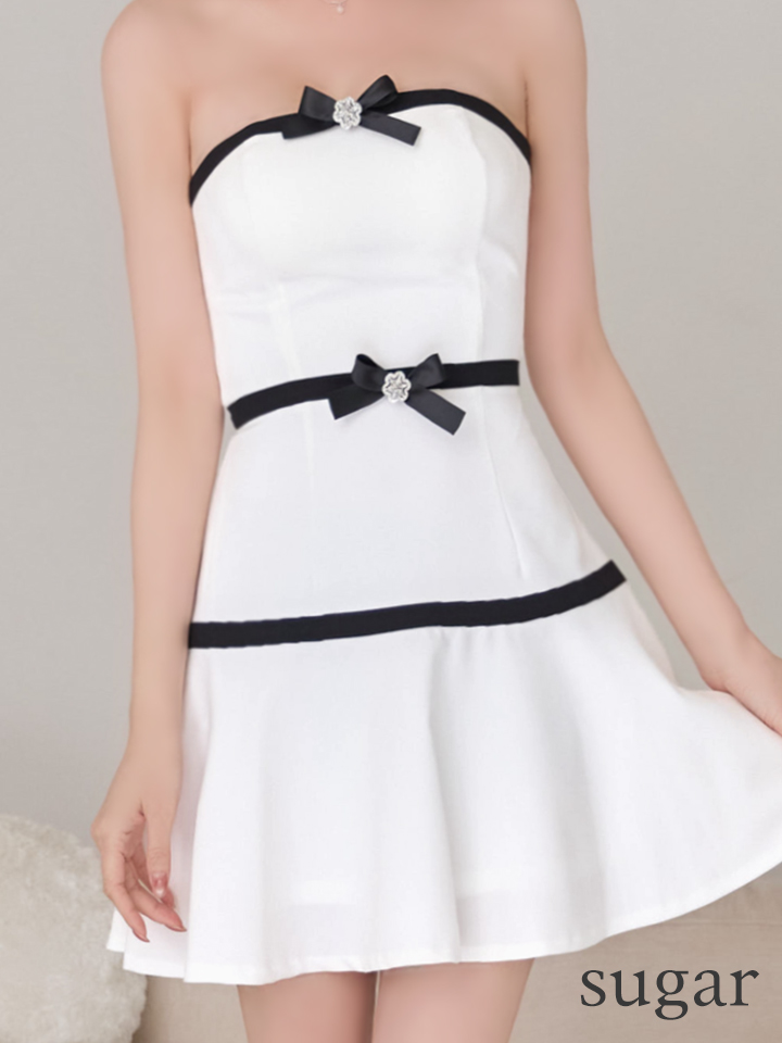 - > 【予約商品/3月下旬発送予定】XSサイズあり【an /アン】 2WAY/ バイカラー/ リボン/ ベア/ ブローチ/ フレア/ Aライン/ ミニドレス/ キャバドレス[OF05]