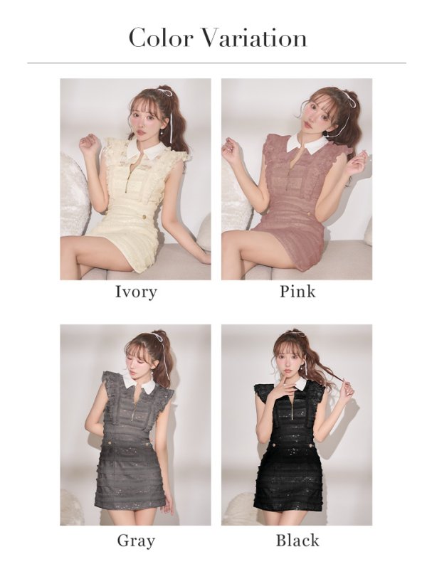 - > 【予約商品/3月中旬発送予定】XSサイズあり【ROBE de FLEURS/ローブドフルール】フリル/ スパンコール/ チュール/ ミニドレス/ キャバドレス[OF08]
