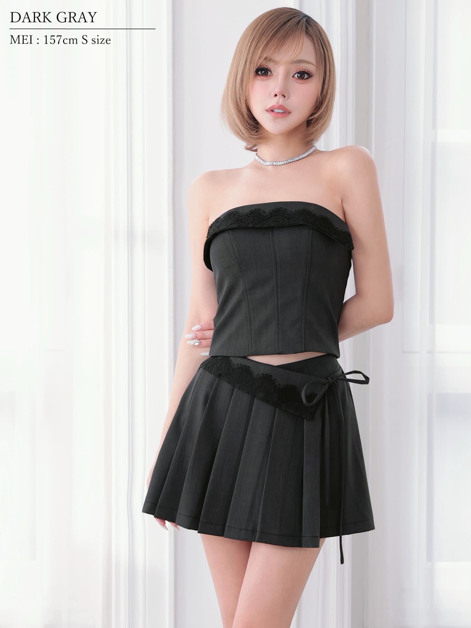 【予約商品/3月下旬-4月上旬発送予定】XSサイズあり【ANGEL R/エンジェルアール】ベアトップ/ レース/ リボン/ プリーツ/ セパレート/ フレア/ マイクロミニドレス/ キャバドレス[OF2] [AR26313-GYGE-2603]