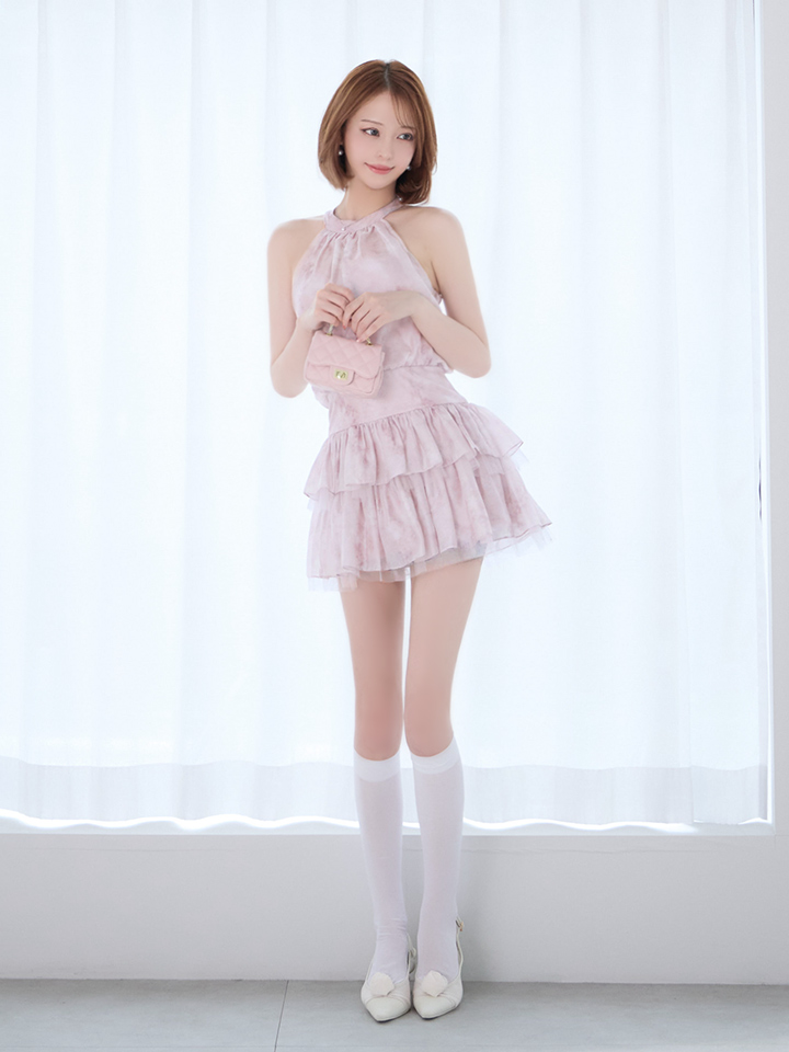 - > 【予約商品/3月下旬-4月上旬発送予定】XSサイズあり【ANGEL R/エンジェルアール】ホルターネック/ ギャザー/ ウエストマーク/ フラワー/ シフォン/ フレア/ マイクロミニドレス/ キャバドレス[OF2]
