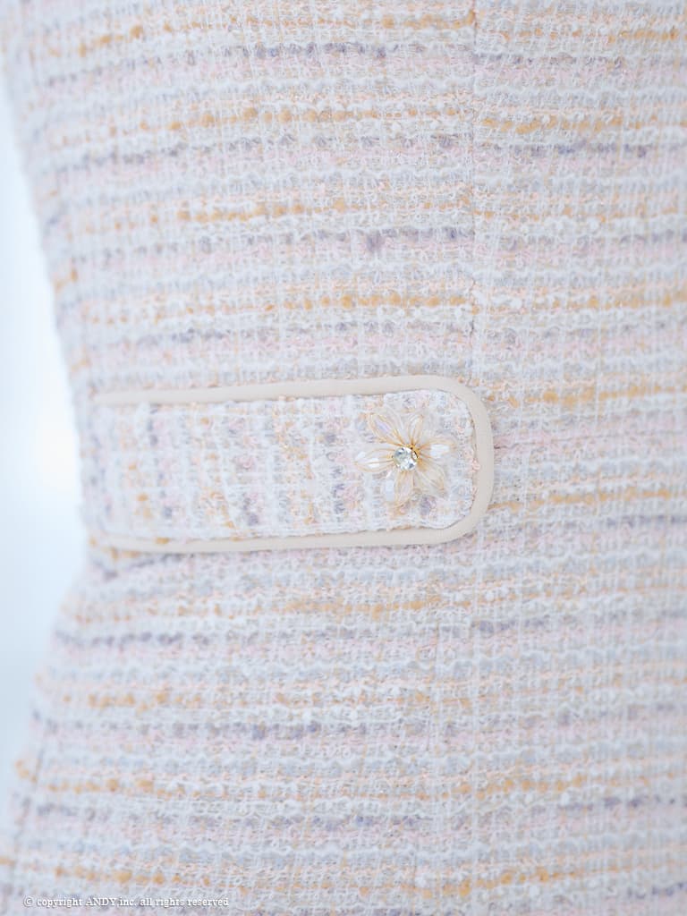 【an /アン】MIXツイード/ フラワーモチーフ/ スクエアネック/ パイピング/ ノースリーブ/ バストジップ/ スリット/ ストレッチ/ タイト/ ミニドレス/ キャバドレス[OF05]] [AOC3820-BE-2603]