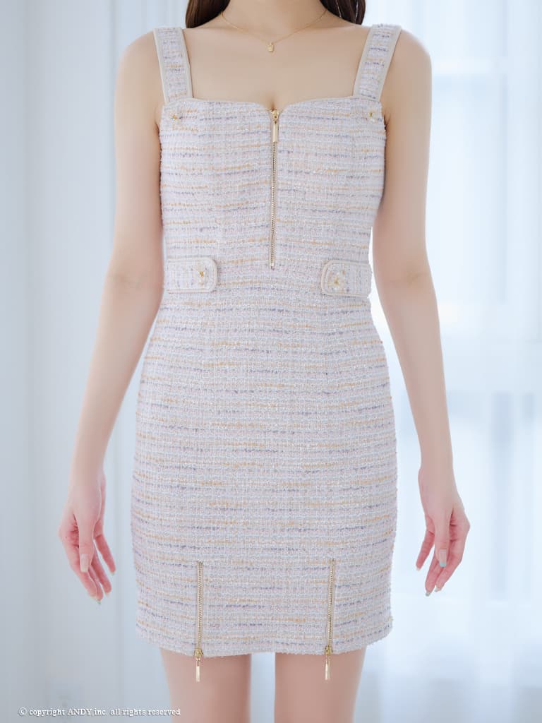 MIXツイードが上品かつ可愛らしい印象を与えるタイトミニドレス。