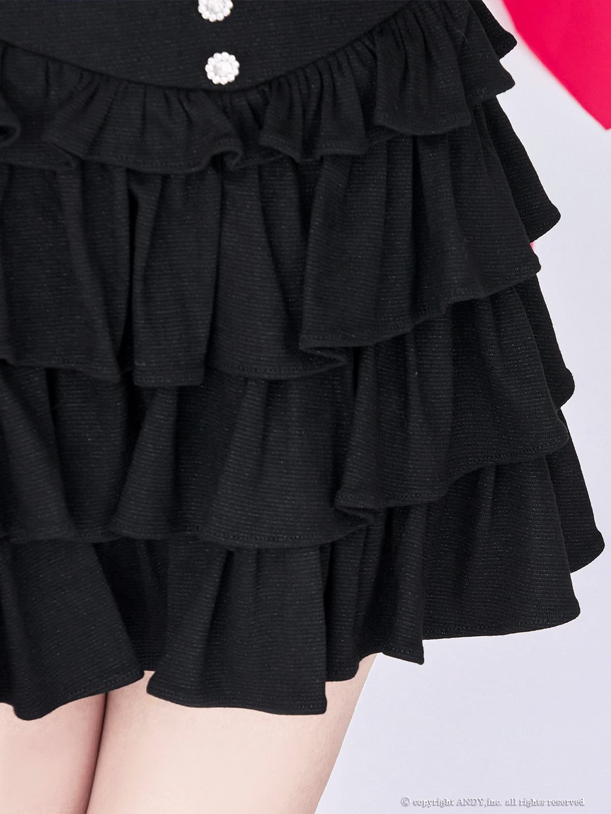 XSサイズあり【an /アン】 セットアップ/ バイカラー/ ビジューボタン/ ノースリーブ/ ストレッチ/ ベルト/ フリル/ ティアード/ フレア/ ミニドレス/ キャバドレス[OF05]