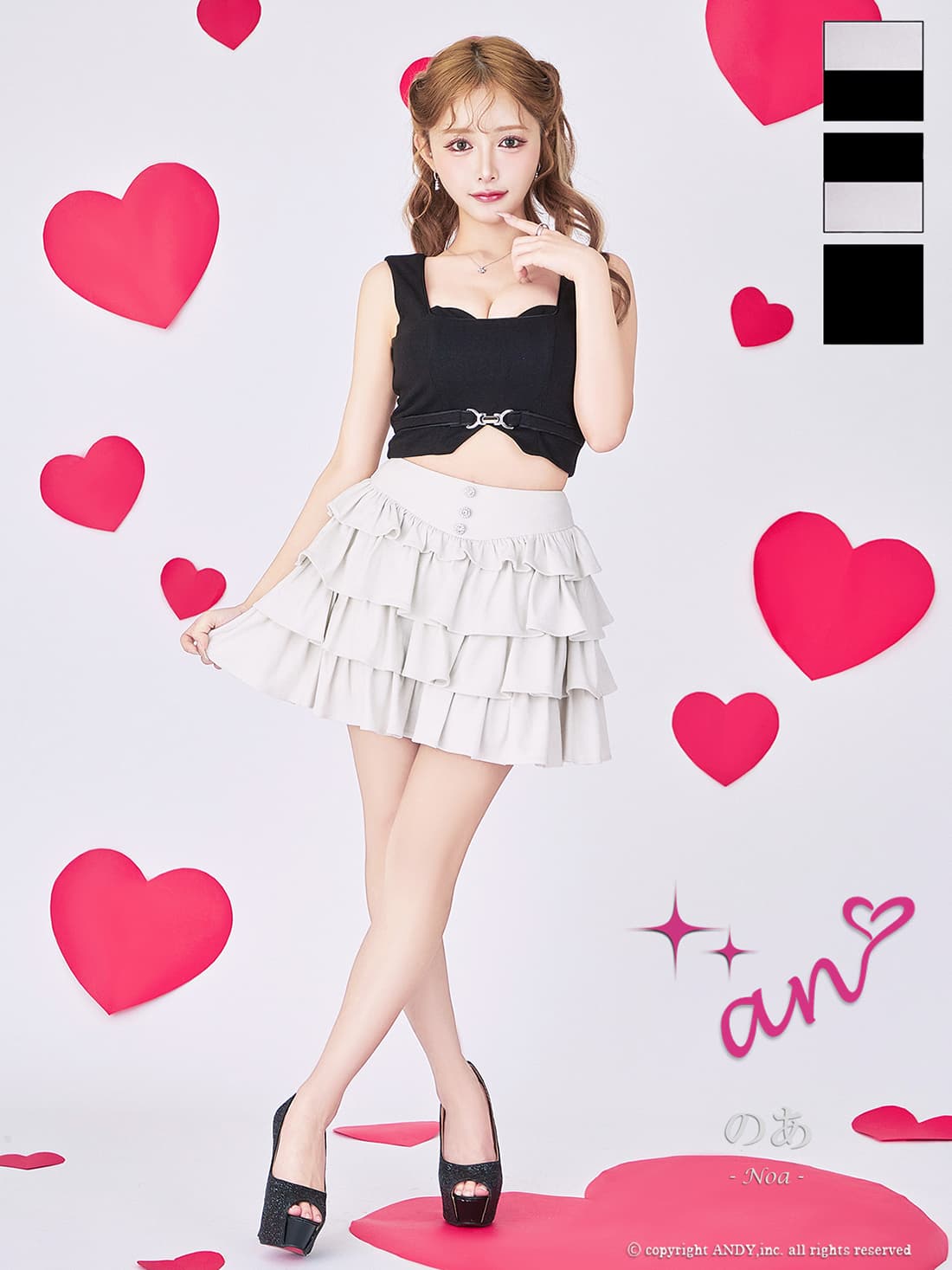 - > XSサイズあり【an /アン】 セットアップ/ バイカラー/ ビジューボタン/ ノースリーブ/ ストレッチ/ ベルト/ フリル/ ティアード/ フレア/ ミニドレス/ キャバドレス[OF05]