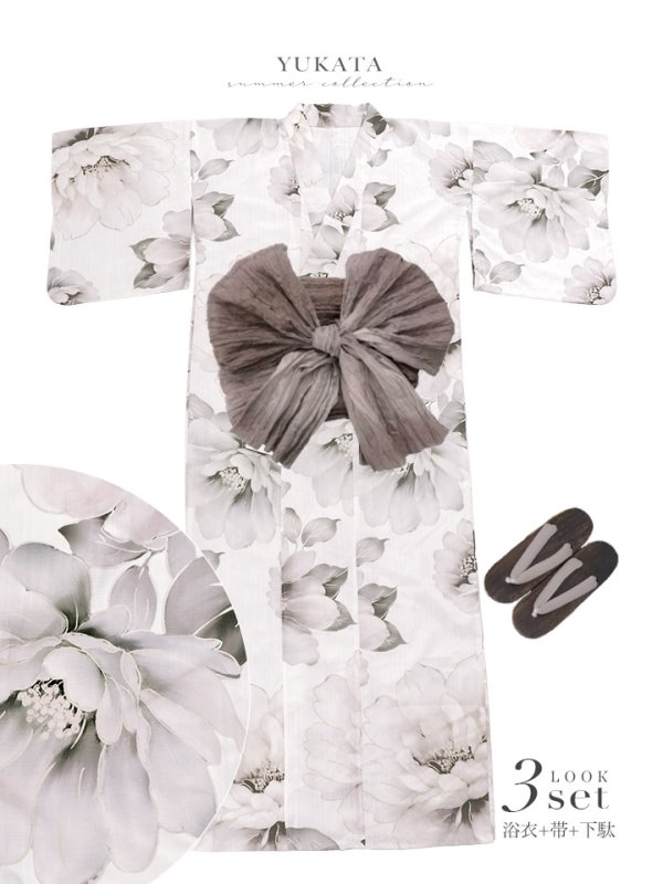 送料無料!グレージュニュアンスピオニー浴衣【浴衣3点セット 浴衣/帯/下駄】[OF04]【予約 / 4月上旬発送予定】 [Y-9351-nz-dzm-GY-F-26PO-260318]