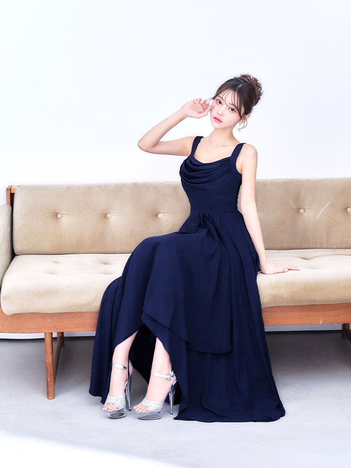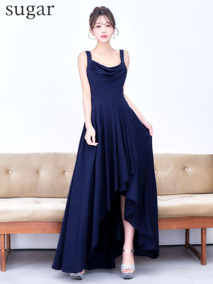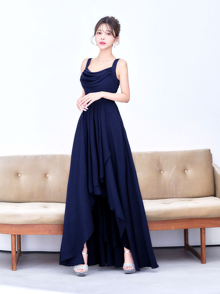 Lサイズあり【CLEO CLOE/ クレオ クロエ】 オケージョンドレス/ パーティードレス/ ステージドレス/ イベントドレス/ バストドレープ/ ノースリーブ/ 変形ヘムライン/ フレア/ ワンピース/ ロングドレス long[OF05] [L60229L-NV-S2603]
