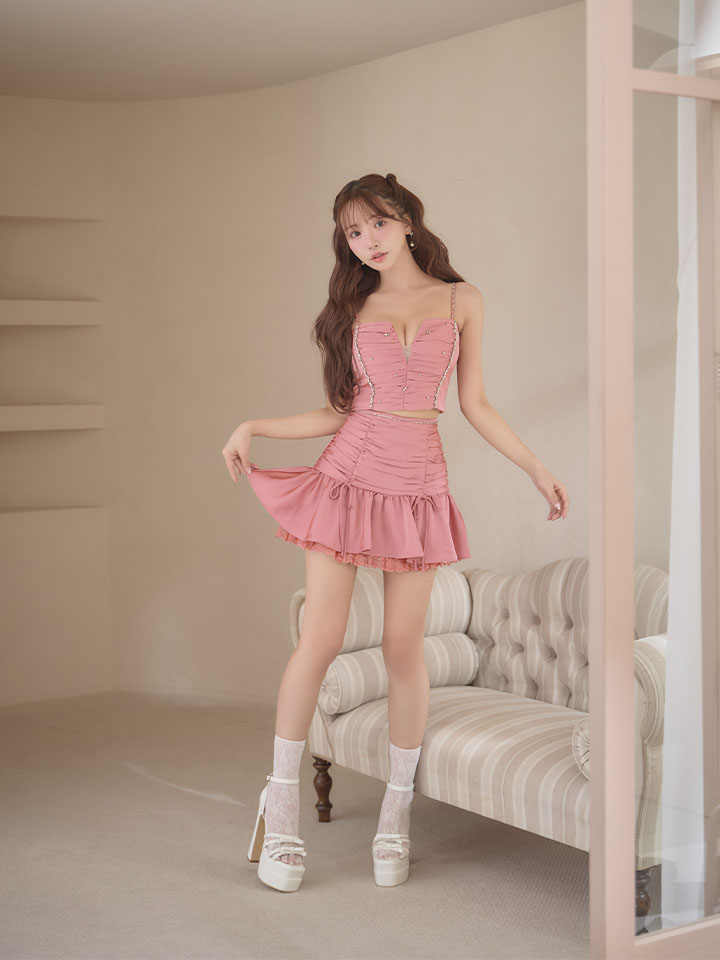 XSサイズあり【ROBE de FLEURS/ローブドフルール】サテン/ ビジュー/ レース/ フレア/ キャミソール/ ツーピース/ セットアップ/ ミニドレス/ キャバドレス[OF08] [FM3598-P-S260318]