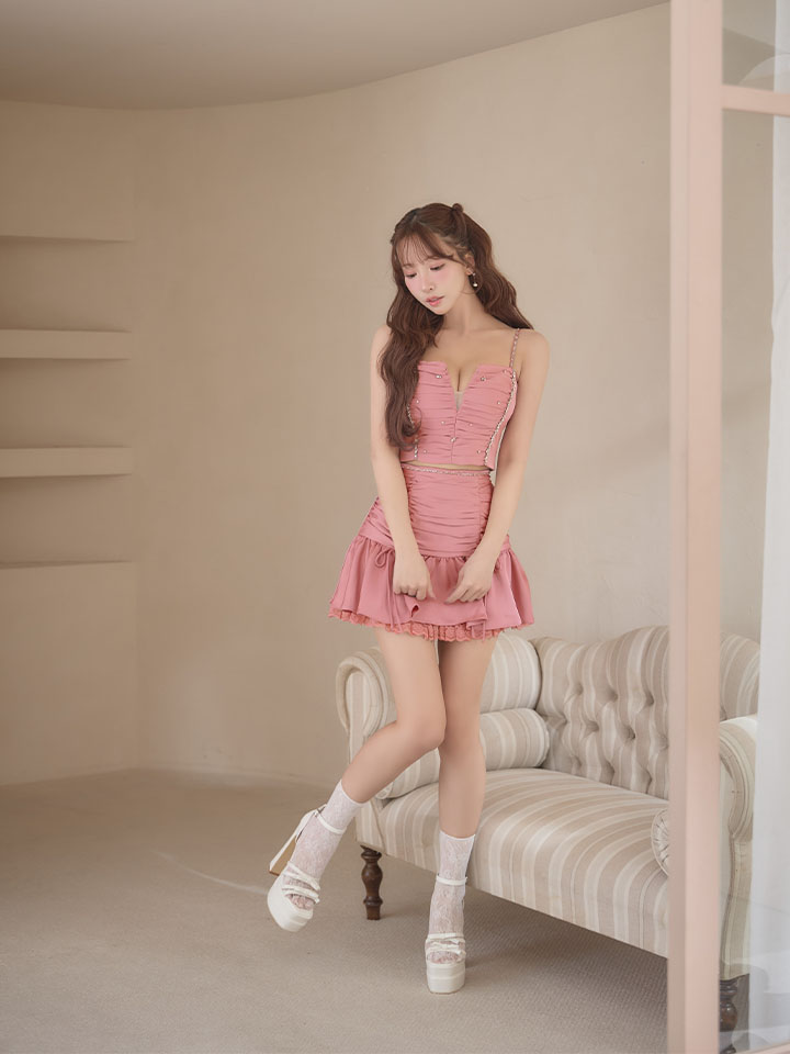 サテンとビジューが上品かわいいセットアップミニドレス♡