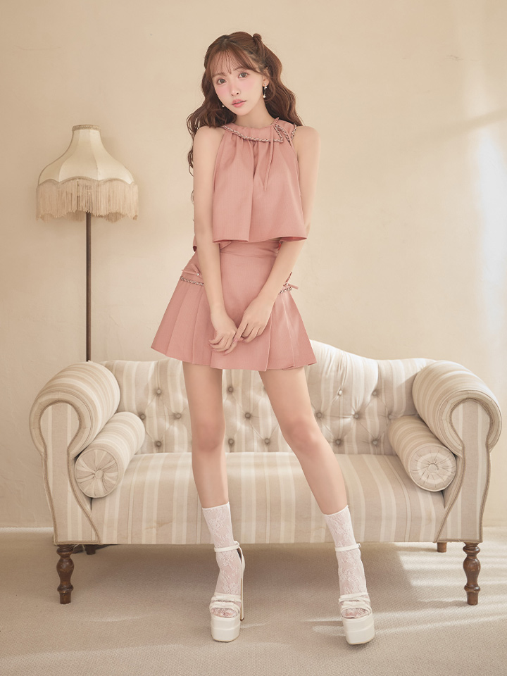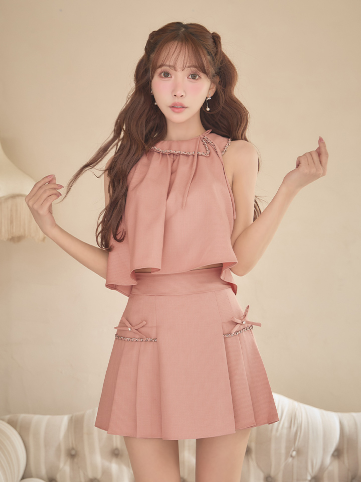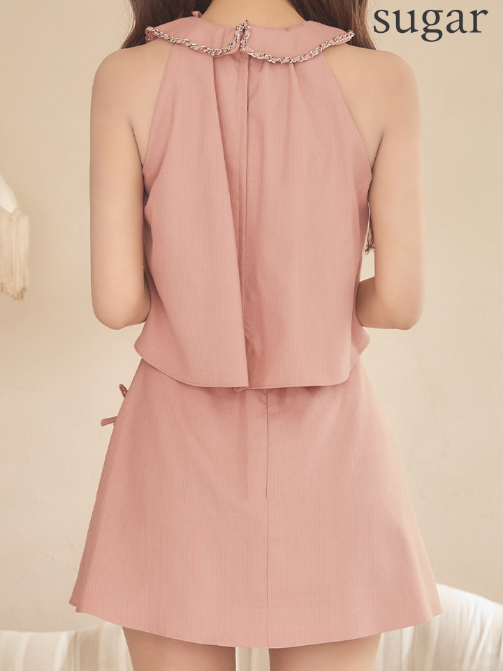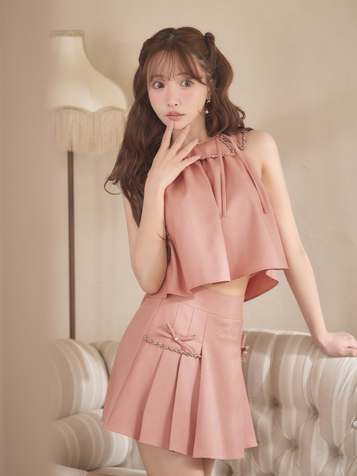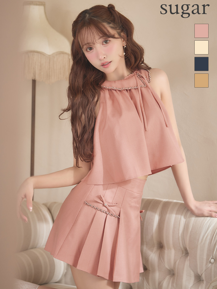 XSサイズあり【ANGEL R/エンジェルアール】カラー/ チェーン/ リボン/ プリーツ/ セットアップ/ フレア/ マイクロミニドレス/ キャバドレス[OF2] [AR25864-P-S260318]