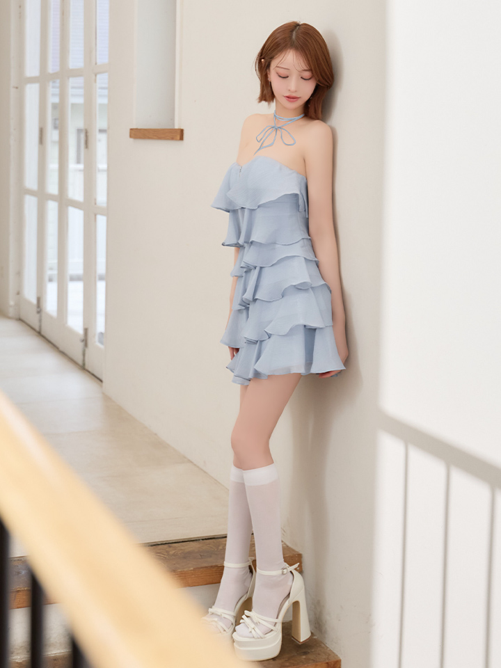 メロウ加工のティアードフリルがとびっきり可愛いフレアミニドレス♡