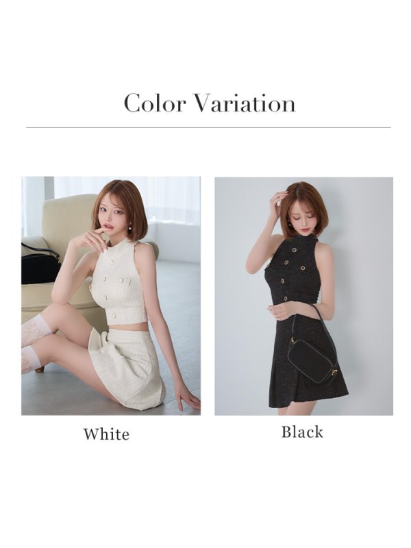 XSサイズあり【ANDY/アンディ】ノースリーブ/ アメスリ/ ボタン/ ツイード/ セットアップ/ ボックスプリーツ/ フレア/ ミニドレス/ キャバドレス[OF05]